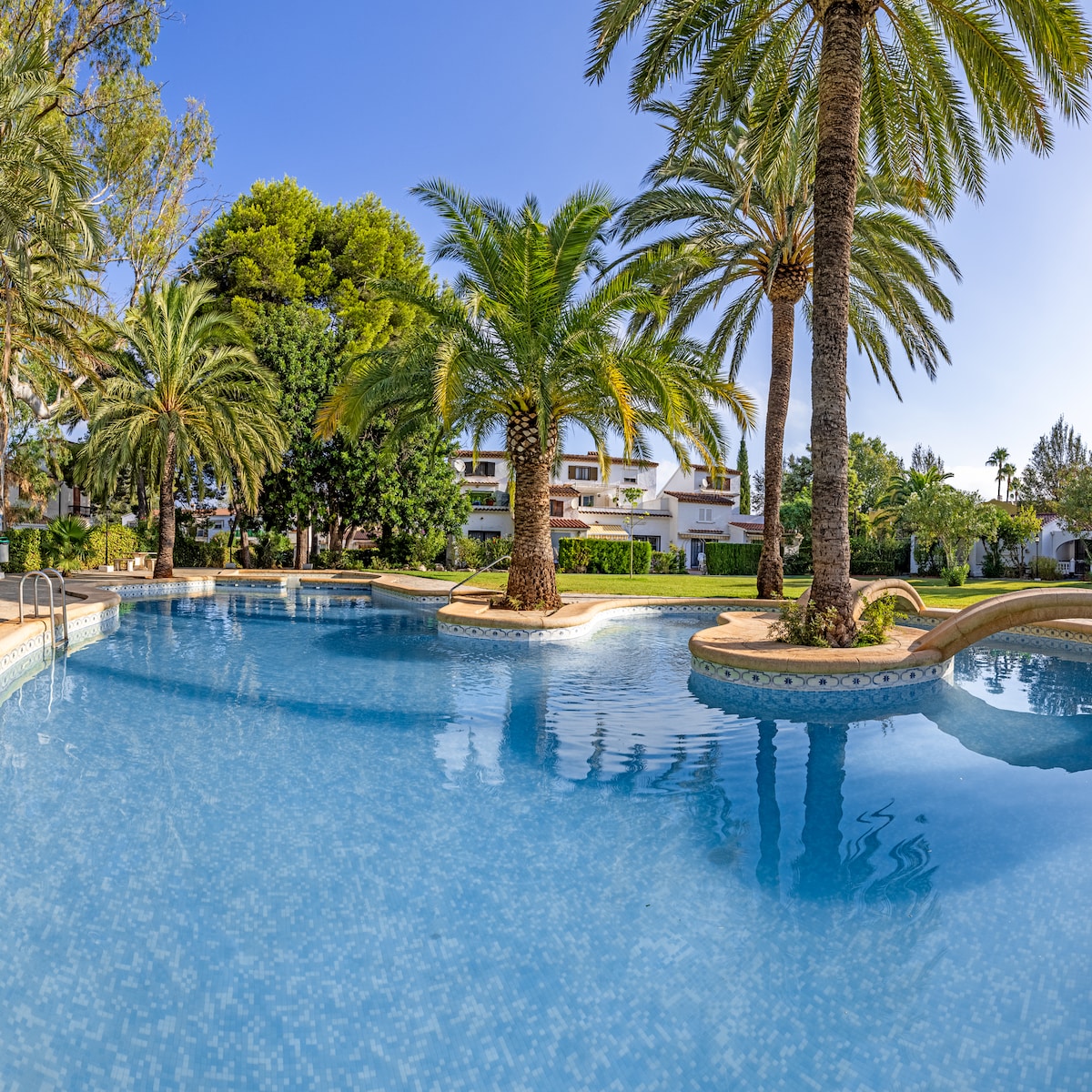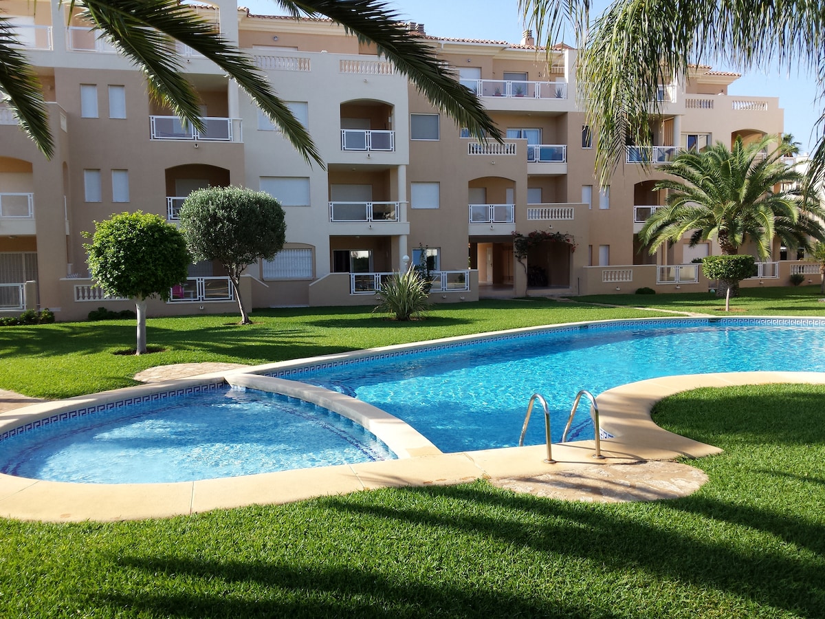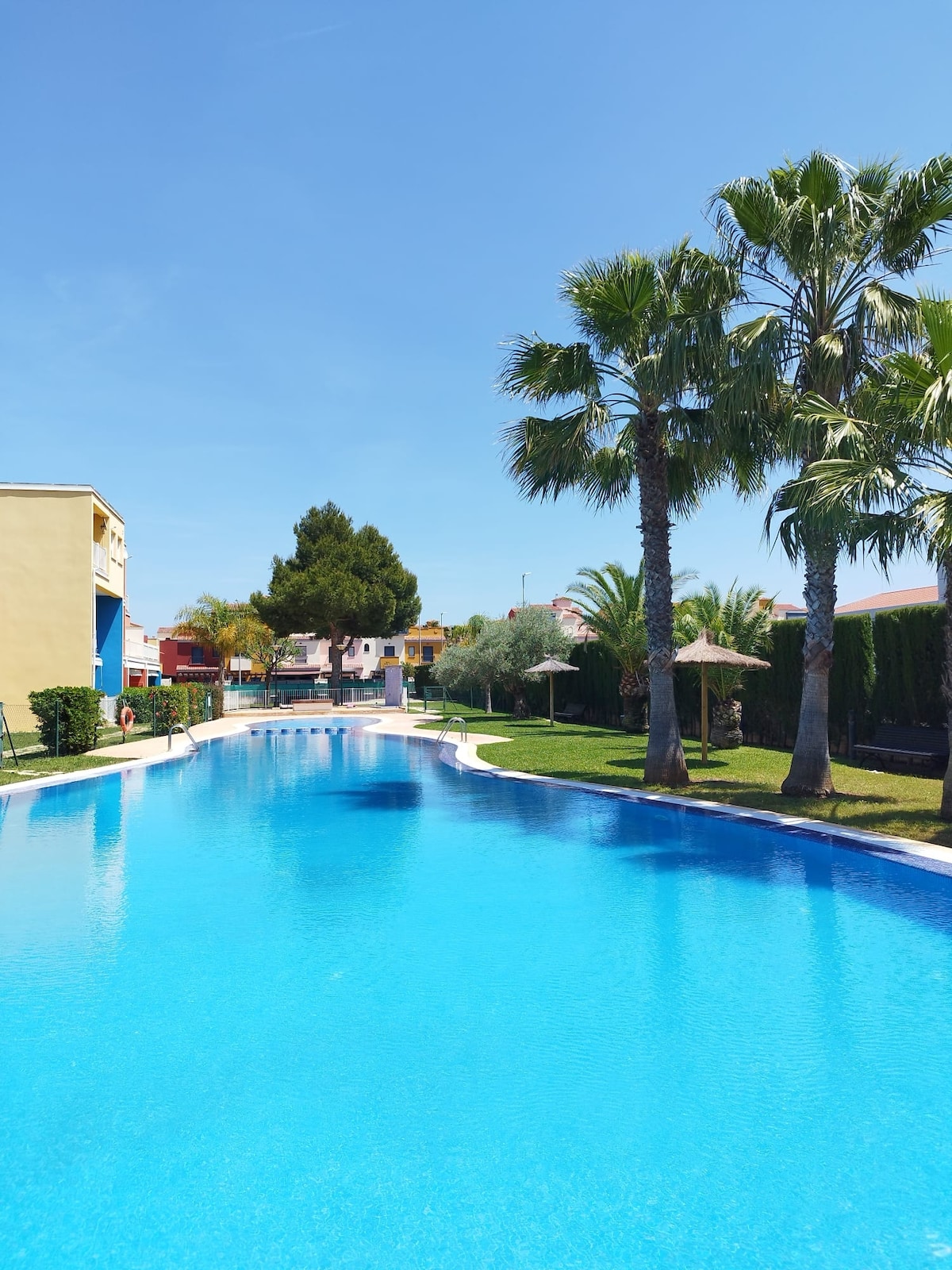 Apartamento de 2 habitaciones en planta baja con acceso directo a la terraza privada y a la piscina comunitaria con jardín Amueblado, equipado, limpio y nuevo Playa a 950metros (a 400m adicionales pequeña bahía de arena fina que gracias a los rompeolas simula una piscina natural si el tiempo acompaña) 2 camas dobles de 150 y 135 cm con colchones firmes (+ sofá cama doble de sistema italiano) Smart tv de 55" y wifi Toallas, sábanas y edredon, instrumentos de cocina Parking privado y Lidl a 50m