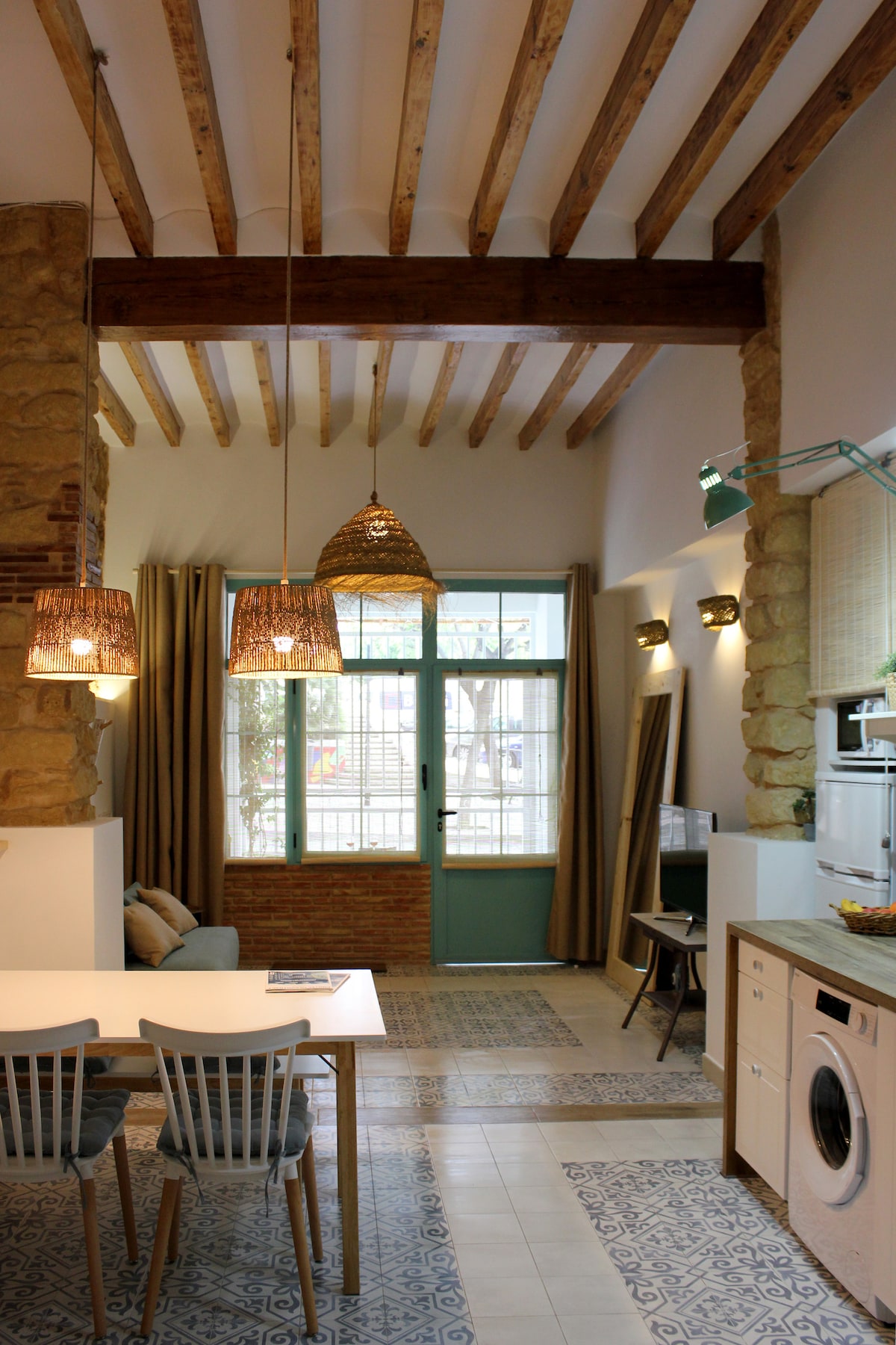 This beautiful, spacious and luminous 110 sqm loft is located in the heart of Alicante’s historic center with views over the old town. The loft with its 4.5m high ceilings is flooded by light, which creates the special atmosphere of this place with its wooden beams, stonewalls and exquisite furniture. The beach is a 5 minutes (350m) walk away and the numerous nearby bars and restaurants invite you to enjoy the typical Mediterranean vibes of the old town.