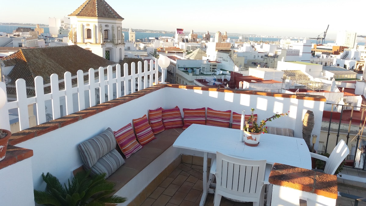 Estupendo ático en el centro del casco histórico. Apartamento ideal para parejas con ganas de conocer los encantos de la ciudad de Cádiz. Situado en pleno centro del casco histórico, en calle peatonal paralela al muelle. Luminoso y alegre , tiene una magnífica terraza privada, un dormitorio con cama de 160x200cm, un cuarto de baño, salón con amplio sofá y cocina americana. La finca no dispone de ascensor.