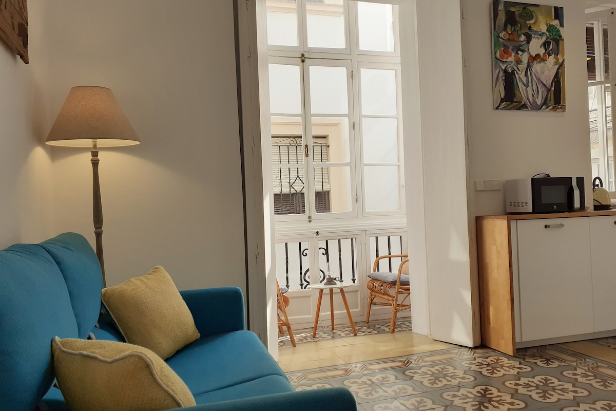 Un cómodo y coqueto apartamento situado en pleno centro de Cádiz Su exquisita decoración transmite paz y calma. Es un lugar ideal para poder descansar y disfrutar de todo lo que te ofrece Cádiz . Ubicado en el barrio del Mentidero, entre el famoso parque Genovés y la Alameda, y en un agradable paseo te encontrarás con la playa más pintoresca de Cádiz , La Caleta. Todo está cerca, comercios, bares, monumentos... Equipado con todo lo necesario para hacer su estancia en Cádiz inolvidable.