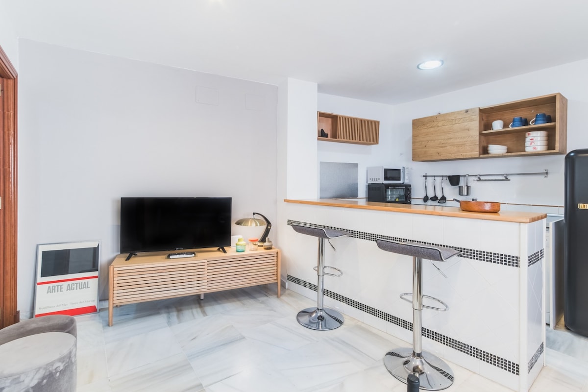 Exclusivo apartamento de 40 m² ideal para dos personas, ubicado en el corazón de Cádiz, con diseño moderno y lleno de luz natural. Ofrece todas las comodidades necesarias para una estancia confortable. Dispone de un acogedor salón integrado con una cocina totalmente equipada, un baño moderno, y una habitación con cama de matrimonio de 1,50 m, además de un encantador balcón. Incluye aire acondicionado, calefacción y conexión a internet de alta velocidad. La ropa de cama y toallas están incluidas.