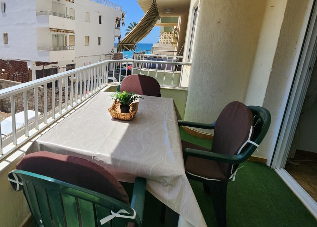 Seafront Apartment in Almunecar, Costa Tropical with community swimming pool. Two bedroom, two bathroom, bright and spacious seafront apartment, beautifully decorated, directly overlooking the Mediterranean sea. Southerly facing terrace, air-conditioning (heating/cooling) in both bedrooms and lounge, fast Wi-Fi, good location. Family and pet friendly. Tourist licence: VUT/GR/-00826