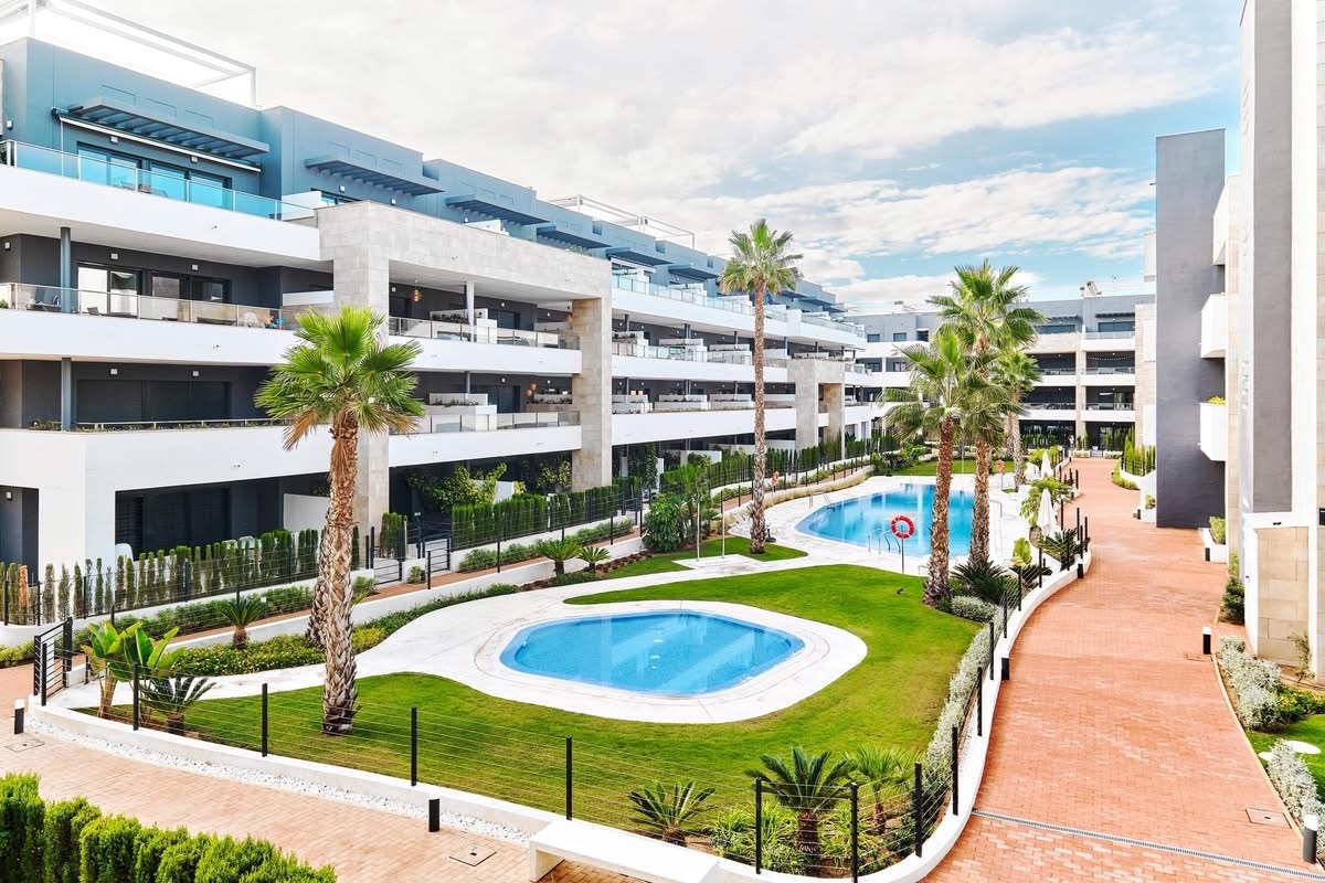 Luxury 1st-floor, air-conditioned apartment with a lift allowing step-free access to the large swimming pool and car parking inside gated community. Only 5 min drive or electric bike/scooter hire to several lovely beaches. 100m walk from la Fuente Commercial Centre with c.25 restaurants, bars and supermarkets. One of Spain's largest shopping centres, la Zenia Boulevard and the Cabo Roig ‘strip’ of bars and restaurants are only 2 miles away. Five award-winning golf courses are within 5 miles