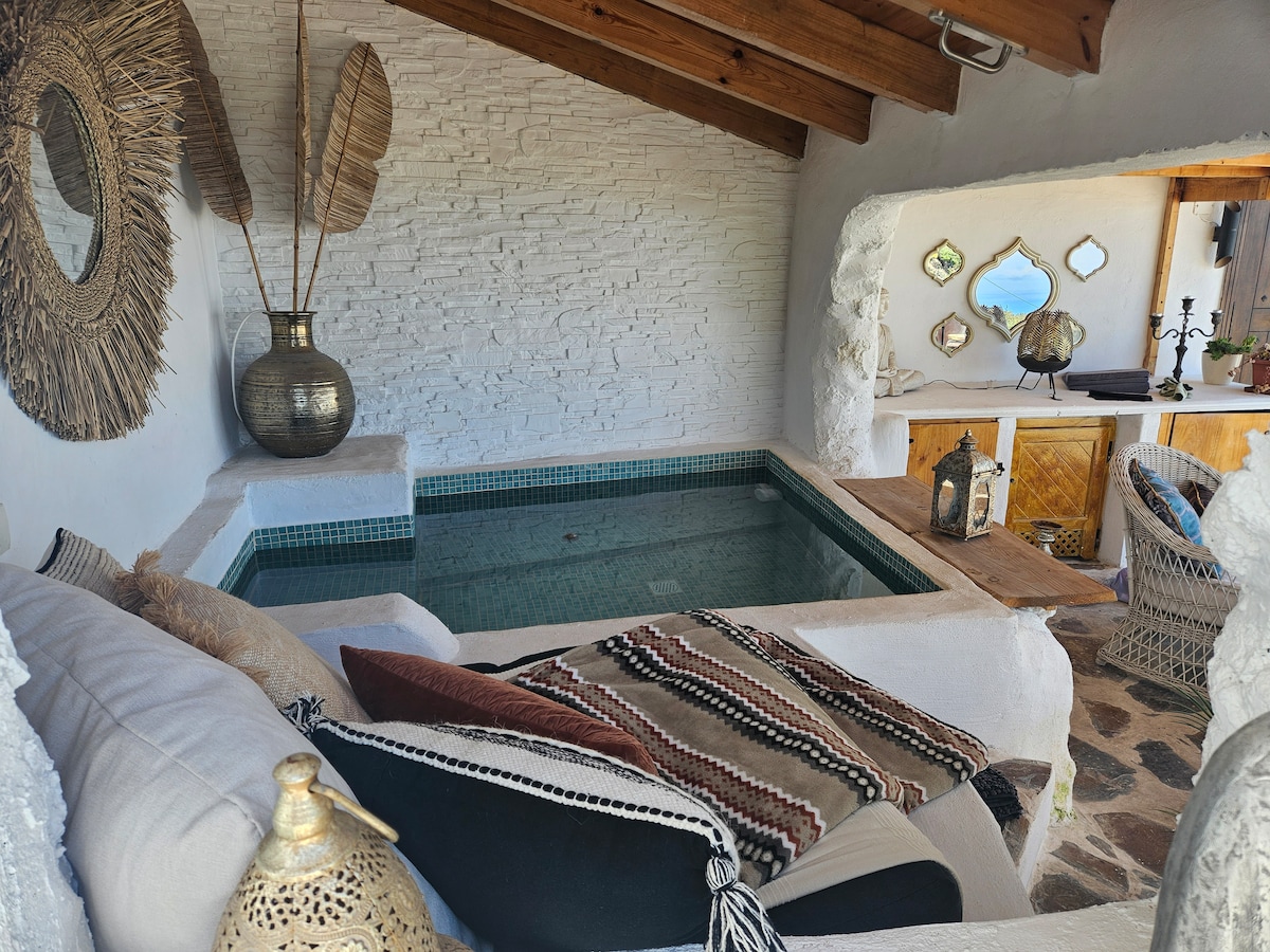 Helles freundliches Häuschen mitten im Grünen mit eigenem Stil. In dem neu renovierten Appartement haben Sie Platz zum Entspannen, zum Kochen und Essen und zum Arbeiten im Homeoffice. Genießen Sie den Sonnenuntergang auf der gemütlichen Terrasse mit Couch. Vom Doppelbett aus sehen und hören Sie das Meer. Der längste und schönste Naturstrand Teneriffas liegt direkt vor der Haustür- 5 Gehminuten zum Wasser. Außerdem haben Sie nur 8 Gehminuten zum Tejita Center mit Restaurants und Supermarkt.