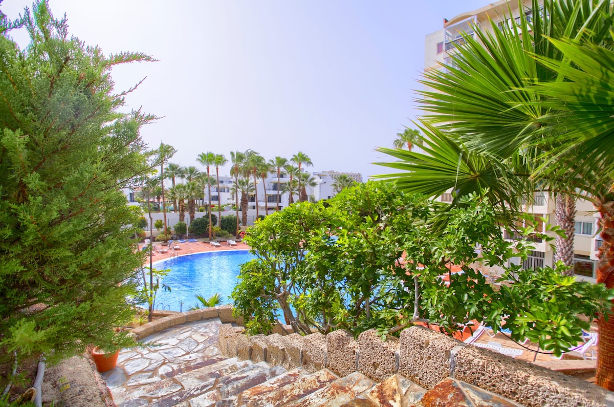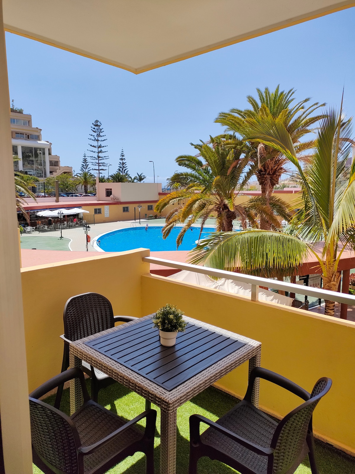 Ask me for special price! Cozy flat with pool view. Located just 3 minutes from the sea. Close to Las Vistas and Los Tarajales beaches. It has a big swimming pool with free sun lounge. Supermarket open daily and pharmacy 50 mtrs. Only 10 minutes from bus stop and 15 km from Tenerife Sur airport. The flat has a living room, equipped kitchen, bathroom, washing machine, bedroom, terrace and Wi-Fi. Nice for two people traveling alone.
