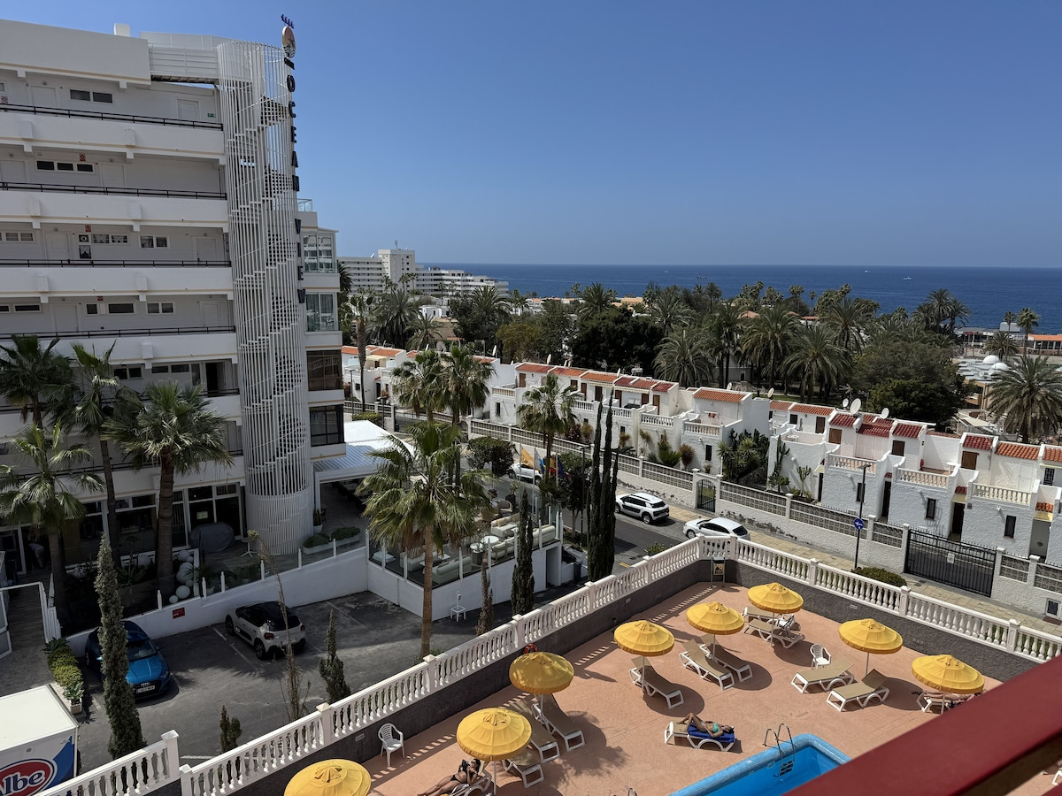 Апартамент находится в Лас Америкас, Коста Адехе, 250 метров от Пляжа Тройя. Есть открытый бассейн в комплексе. В апартаменте есть Wi-Fi, телевизор, 1 спальня с двуспальной кроватью, гостиная с раскладывающимся диваном (с дополнительным спальным местом), обеденная зона, оборудованная кухня и ванная комната. С балкона открывается вид на бассейн, океан и горы. Рядом с апартаментом красивая набережная, где можно прогуляться и полюбоваться видами на океан. В пешей доступности магазины и рестораны.