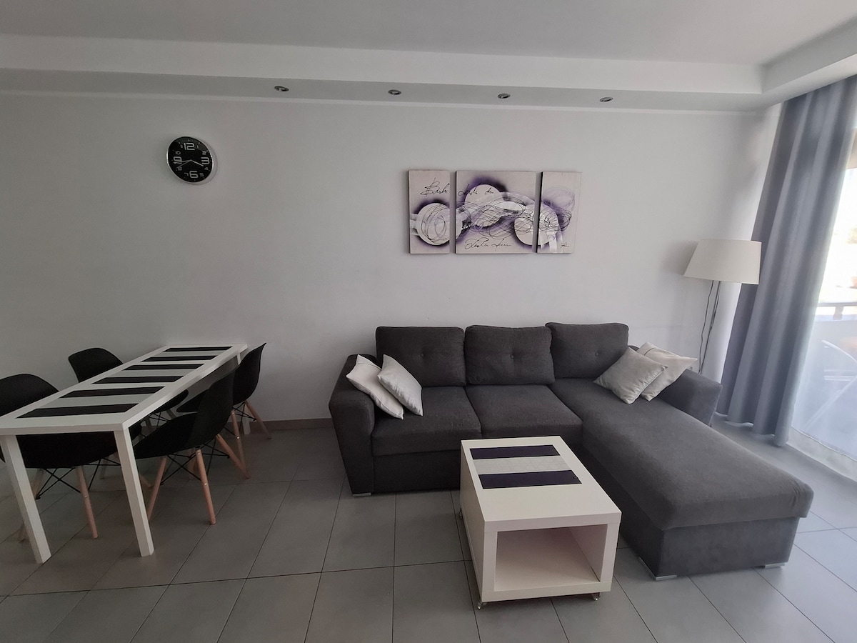 Checkout my fully equipped 1 bedroom newly renovated and comfortable apartment in the heart of Playa de las Americas (the most vivid region) in Tenerife just 1 street from the sea! Enjoy the direct ocean balcony view, a king size anatomic double bed, free Wifi up to 300Mbps, free access to the pool, free parking, new IKEA kitchen with oven and all kitchenware of highest quality, new electric appliances, sleeping sofa, laundry, LCD TV and much more!