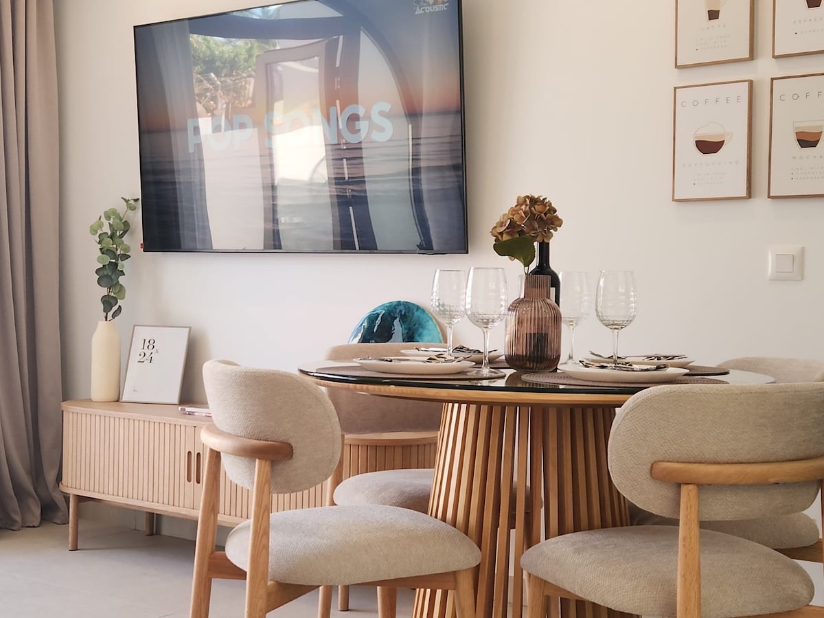 Luminoso,sereno, amplio... un espacio donde el tiempo parece otro, más lento. Disfrutar del sol y de la sombra, trabajar con la casa abierta, sumergirnos en el agua, comer y cenar al aire libre, leer, jugar, pasear por la playa, cocinar sin prisa... la buena vida. Como arquitecto, después de hacer muchas reformas, sé que la luz y el espacio son el verdadero lujo. Un espacio principal que se abre completamente a la terraza orientada hacia el mar, hacia el atardecer, en un entorno muy tranquilo.