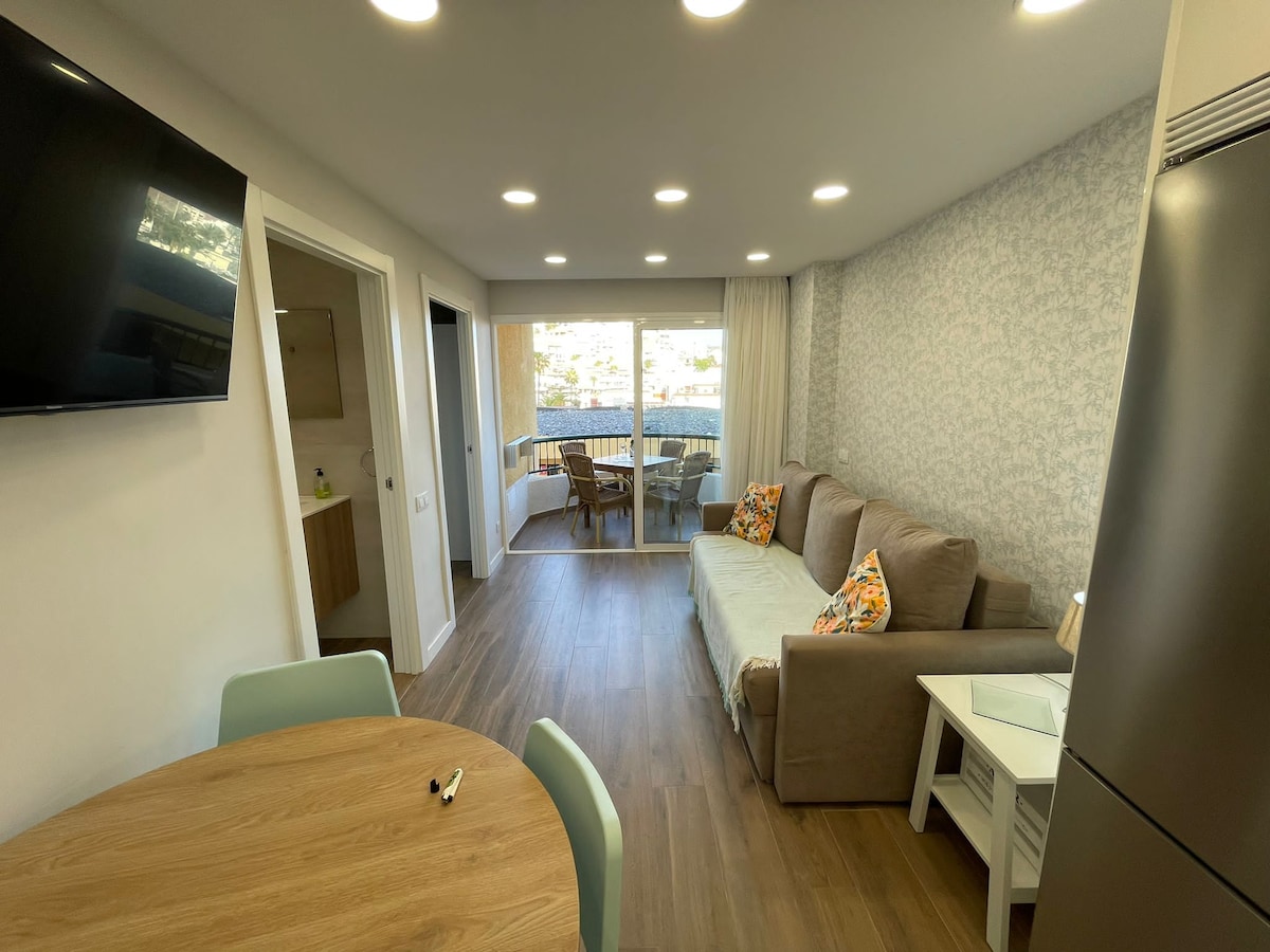 Stay in the heart of Los Cristianos in this renovated penthouse studio with attic charm. Nestled on the top floor of a historic 1966 building, the space offers a bright and modern design with all essentials for a carefree holiday. Just a short walk to the beach, restaurants, and shops, it’s the perfect base to explore Tenerife. Ideal for couples, solo travelers or digital nomads looking for comfort, location, and authentic island vibes.
