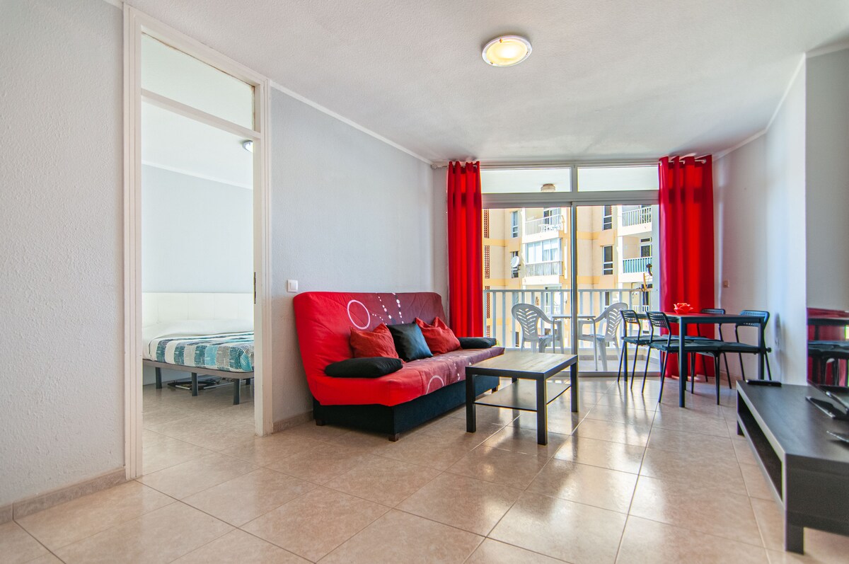 Magnífico apartamento en Playa Las Vistas, entre Los Cristianos y Las Américas, moderno, luminoso, soleado y con vistas panorámicas. Tiene 1 habitación con cama doble, 1 baño con ducha de 150x 80 cm, salón con sofá- cama, terraza de 10 m2 con una mesa para 4 personas, orientación sur, cocina bien equipada, cerca de todos los servicios. El complejo cuenta con piscina, aseos, 2 ascensores, jardines bien cuidados, acceso para personas con discapacidad, a muy pocos minutos de todos los servicios.
