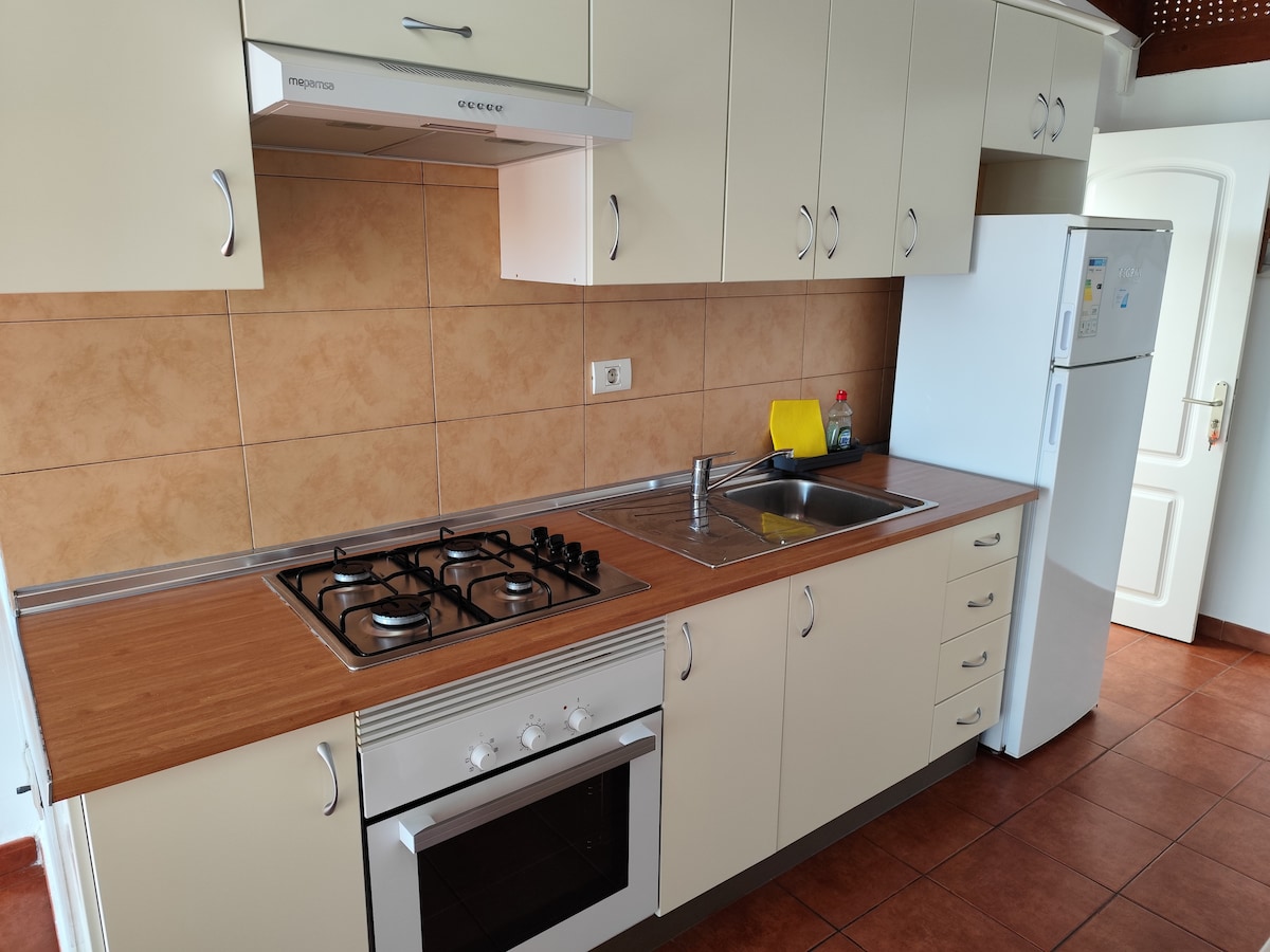 Apartamento muy bién ubicado, nuevo, recién renovado, a sólo 10 minutos caminando de la playa. Terraza con muy buenas vistas. Un dormitorio de matrimonio y sofá cama en el salón. Wiffi, luz y agua incluido. No hay ascensor, escaleras hasta el tercer piso. El apartamento está con todo lo necesario para ser habitado. Dormitorio, cocina y baño están provisto de todo.