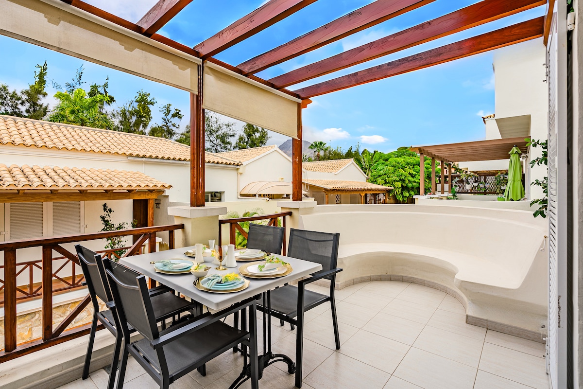 Welcome to our cozy seafront home in Oasis del Sur, Tenerife! Overlooking the tranquil waters of Golf del Sur, our attached town-house offers a peaceful escape for families, couples or friends seeking serenity. Relax and unwind in our well-decorated and functional space, complete with two double bedrooms, two shower rooms, and a sun-drenched terrace perfect for soaking up the sun. Take a dip in the seawater heated pool or catch up on your favorite shows with the Smart TV and high-speed WiFi.