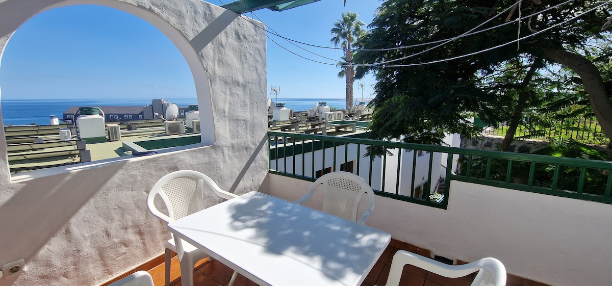 Recently added lovely apartment in San Agustin, 2 minutes walking to the Centro Comercial and 3 minutes to the beach. 3 resort swimming pools, one heated. 1 bedroom + sofa bed in the living room. Strong wifi. Terrace with great sea views! Free street parking. 1 minute walking to bus and taxi station.
