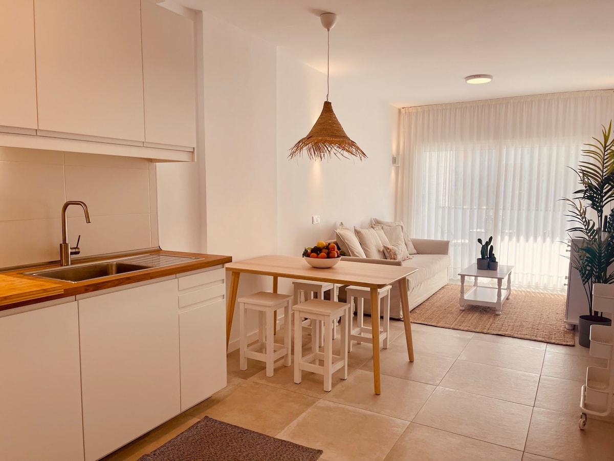 Beautiful newly renovated apartment, just a few steps from the sand of Las Burras beach. It consists of a bedroom with a queen bed, WIFI, quiet terrace overlooking the sea and the pool; modern kitchen with vitro, dishwasher and oven, and living room with sofa bed and smart TV. San Agustín Shopping Center is located 200 meters away with a supermarket, a variety of restaurants and bus stop to Maspalomas, the airport and Las Palmas. Enjoy a perfect stay in a privileged location!