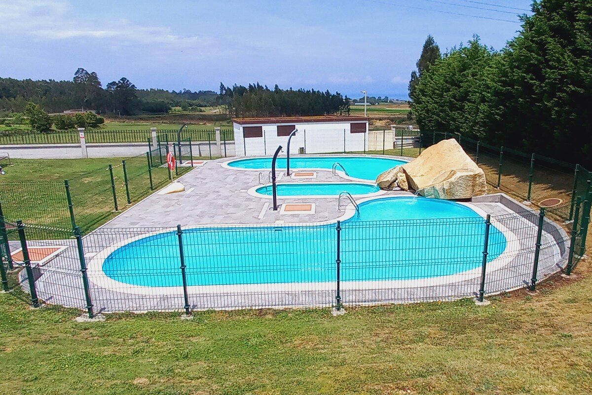 Apartamento luminoso a 5 minutos en coche a la playa de Coto en Barrerios y a 10 min. de la playa de las CATEDRALES. A 5 min de la salida de la autovía . Cuenta con spa, 4 pisicinas exteriores, pistas de deportes y zona de juegos infantiles . Se integra en la pequeña villa de San Miguel de reinante que cuenta supermercados, bares, restaurantes, farmacias..y un ambiente acogedor. Está muy proximo a Foz, Ribadeo y el Occidente de Asturias. Puedes elejir escapadas de playa, rurales o culturales.