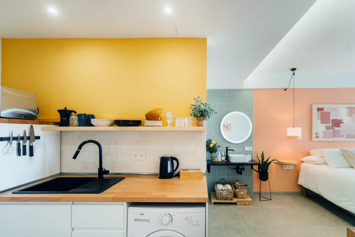 舒适的1卧室房源,阳光明媚的露台 · 海滩和市中心 · 适合情侣/夫妻入住