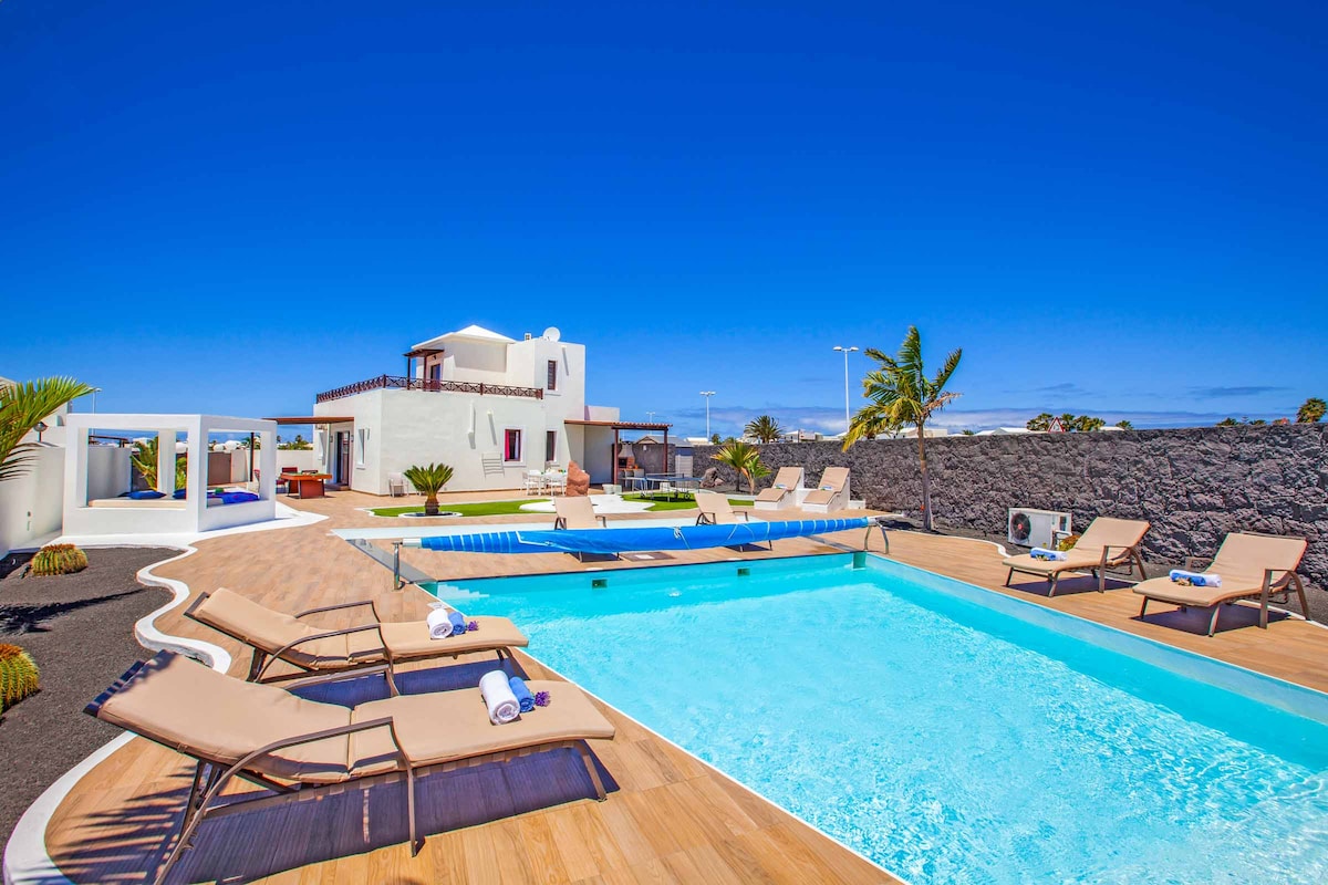 玛丽亚别墅。恒温游泳池、按摩浴缸和空调。