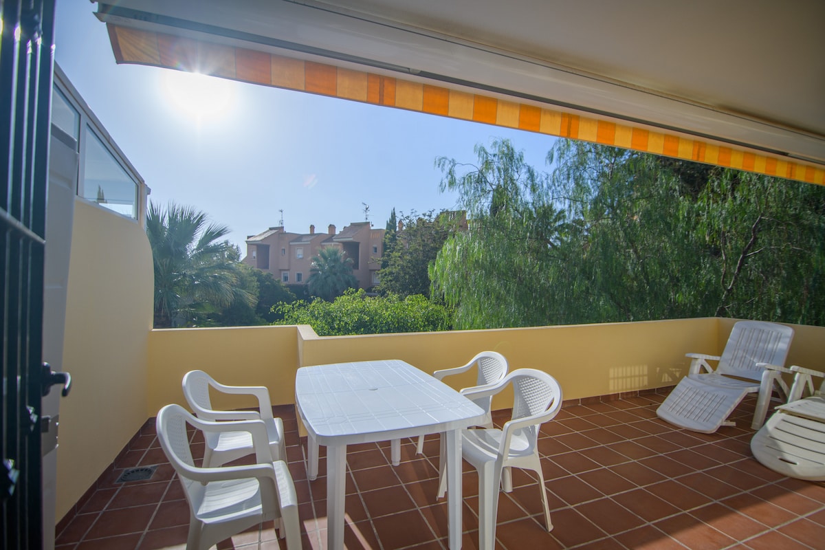 Apartamento bajo con porche en primera línea de playa en Puerto Rey, Almeria. Dos habitaciones, salón comedor, cocina con barra, baño, lavadero y trastero. Aire acondicionado, sofá cama, wifi, smart TV de 55" (Netflix y Amaon Prime) lavadora y secadora. La cocina está equipada con microondas, lavavajillas y menaje completo. La habitación principal consta de cama de matrimonio de 160 y la secundaria de dos camas de 90, ambas con armarios. Parcela de parking privado exterior. Piscina comunitaria.