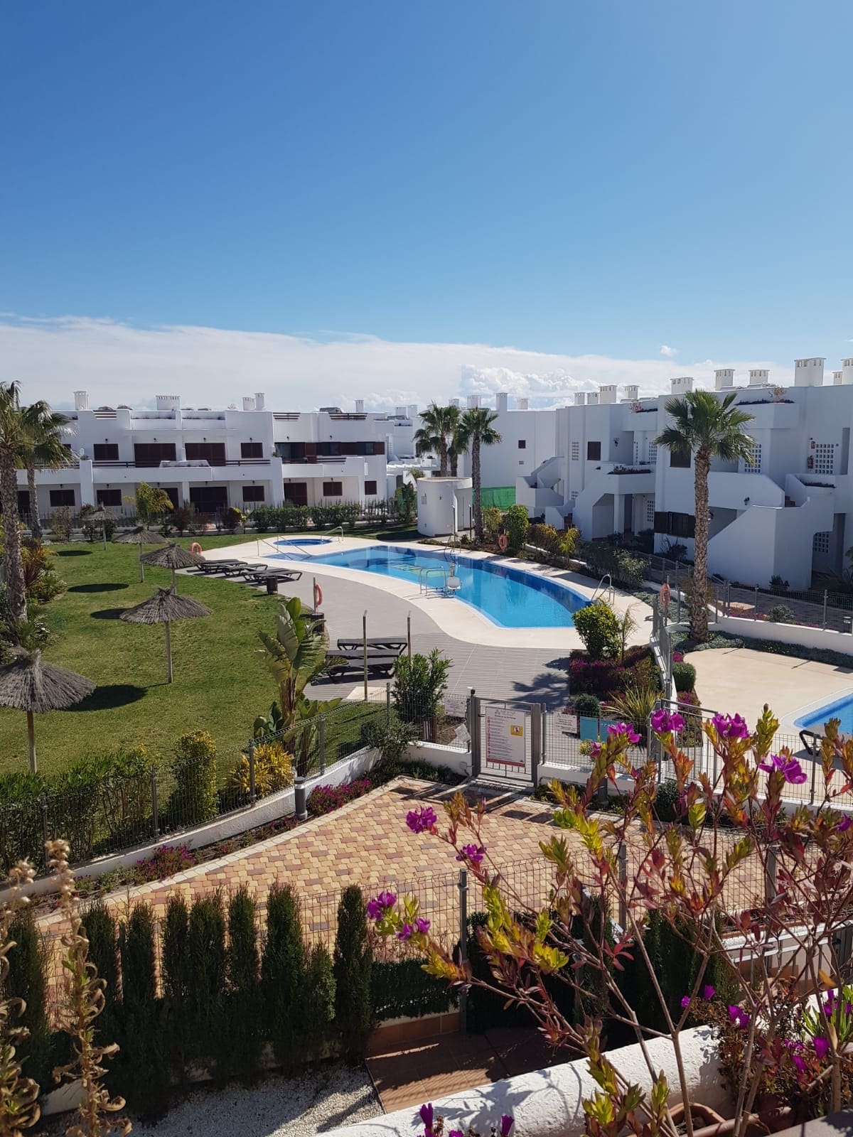 The comfortable apartment in Mar de Pulpi has a south facing terrace with a view on the indoor garden and the swimming pool which is located in San Juan de los Terreros at walking (5-10 min) distance from the beach. It is a comfortable modern apartment with the facilities you have at home. It is located in a typical Spanish lovely coastal village with beautiful bays, mountain views, cozy yummy restaurants, beach bars, super market,... There are plenty of free parking spaces near the apartment