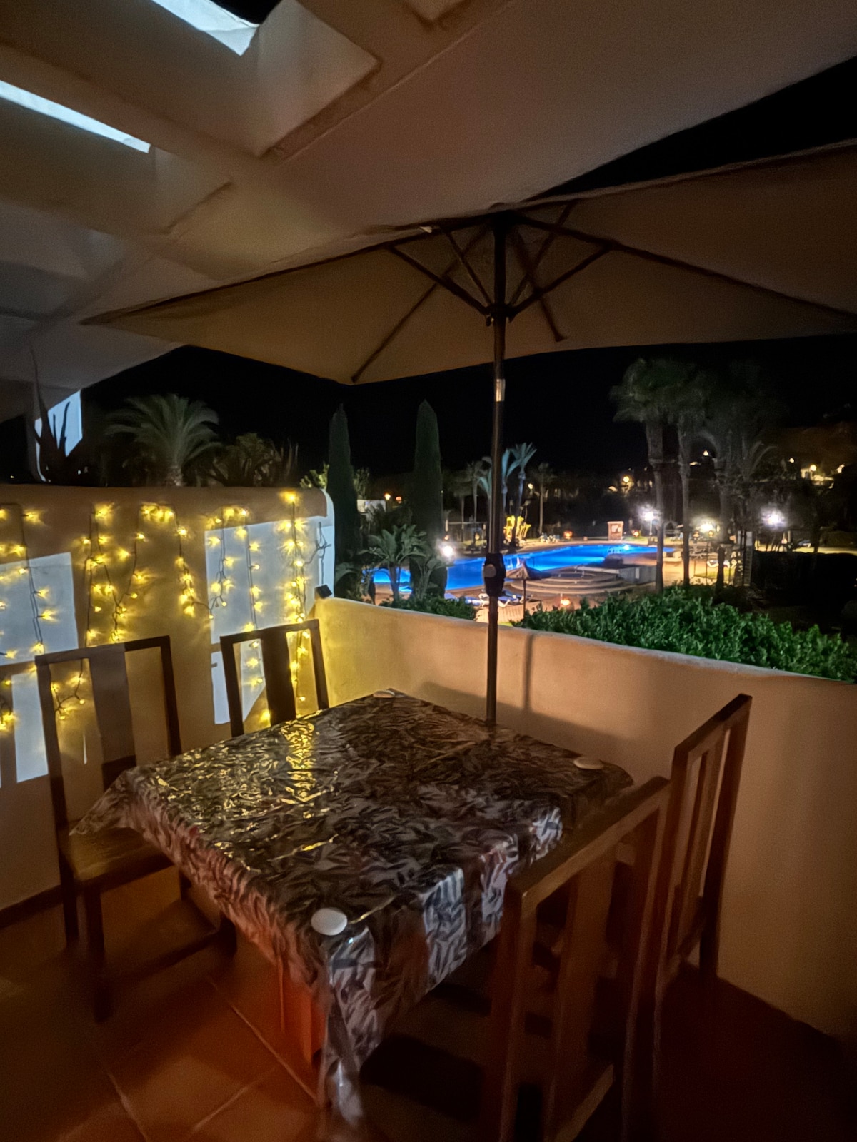Vue panoramique sur la mer. A deux pas de la plus belle Plage de Mojacar. terrasse et jardin privé de 120m2 et ombragé avec son ambiance Bohème. ainsi qu’un grand parking privé et sécurisé vous pourrez laisser votre voiture au parking et aller à la plage à pied … Un appartement neuf décoré par Jeronimo de Mojacar . L' endroit idéal pour des vacances de rêve. Très calme, bien qu'ayant de nombreux commerces a proximités.