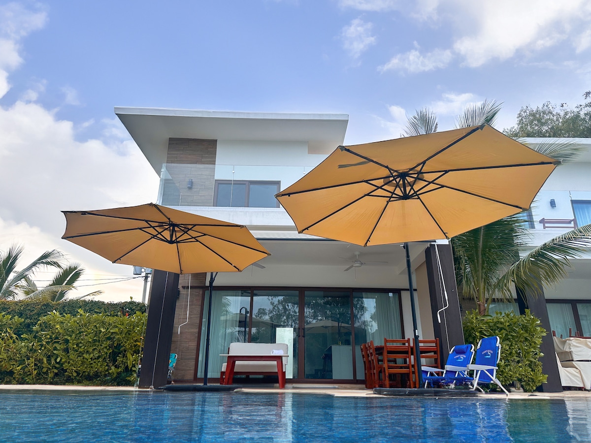 Con tu familia crea recuerdos inolvidables en esta casa en condominio seguro, con cocina moderna completamente equipada. Piscina privada grande con diferentes alturas para todas las edades, y múltiples sombrillas para tener sombra en la piscina. Acceso privado a la playa. Mesa de Ping-Pong, Juegos de niños y jardín de 500 metros para juegos al aire libre. Duerme cómodamente en 5 habitaciones con aire y TV, 16 camas en total. Parqueo para 4 carros dentro de la propiedad, más parqueos de visita.