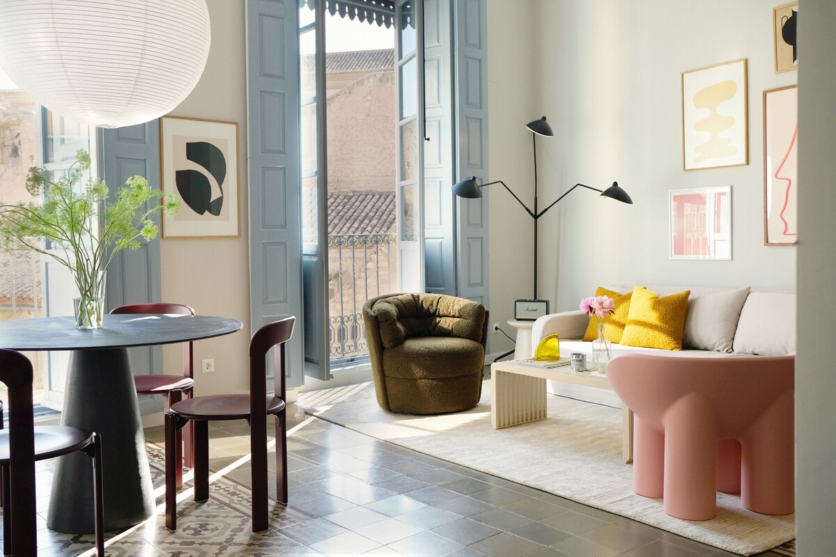 Welcome to Casa Agustina, your home away from home in Alicante! This unique 110 m2 apartment has been beautifully designed by architect duo Studio Sinne using a mix of soft colours with a design focused interior and Mediterranean vibes. Feel at home in this spacious and bright two bedroom apartment, enjoy your morning coffee with views over the historic convent, embrace the charm of the old town. You'll find everything you need for your stay and more.