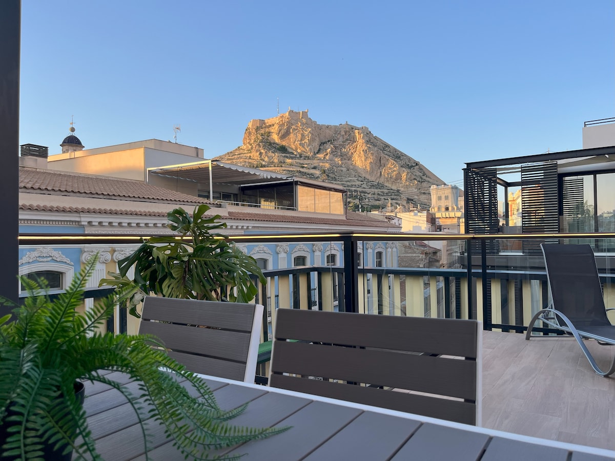 Welcome to the charming and one-of-a-kind little townhouse in the lively old town of Alicante! Nestled in the heart of the old town, this unique townhouse offers a breathtaking view of the city and the Mediterranean Sea. Just a stone's throw away, you'll find the famous Santa Barbara castle, the beach, as well as bars, restaurants, and shopping. Step inside to discover a Bohemian interior that sets the tone for a truly great holiday. Comfortably fits 2, but up to 4 guests are welcome 😊