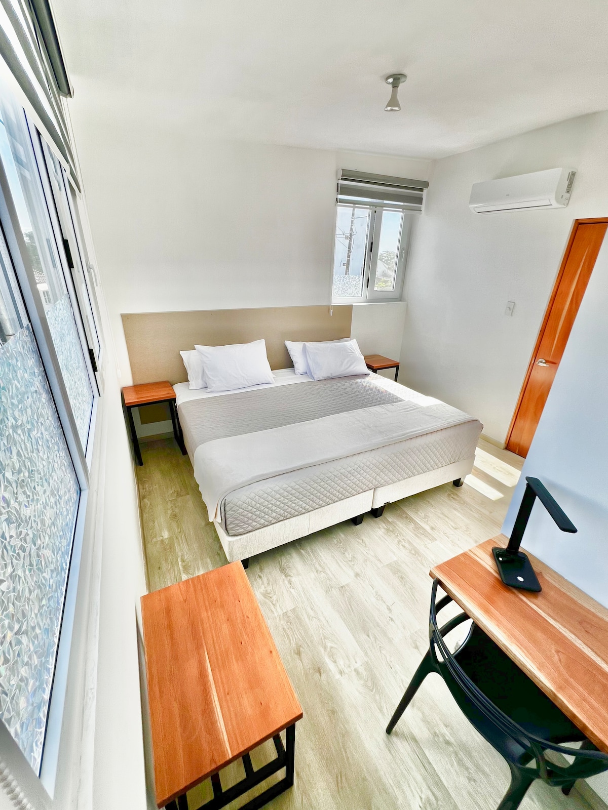 Cómodo apartamento tipo estudio privado recién renovado, compuesto por un solo ambiente que integra el dormitorio y mini cocina. Cuenta con baño privado, aire acondicionado, cama y colchón nuevos con cortinas black-out para un descanso óptimo. La mini cocina está equipada con los utensilios básicos para el uso diario. Ubicado a pasos del centro y a solo 4 minutos a pie del muelle de pasajeros, muy cerca del Malecón. Ideal para descansar y disfrutar de la zona.