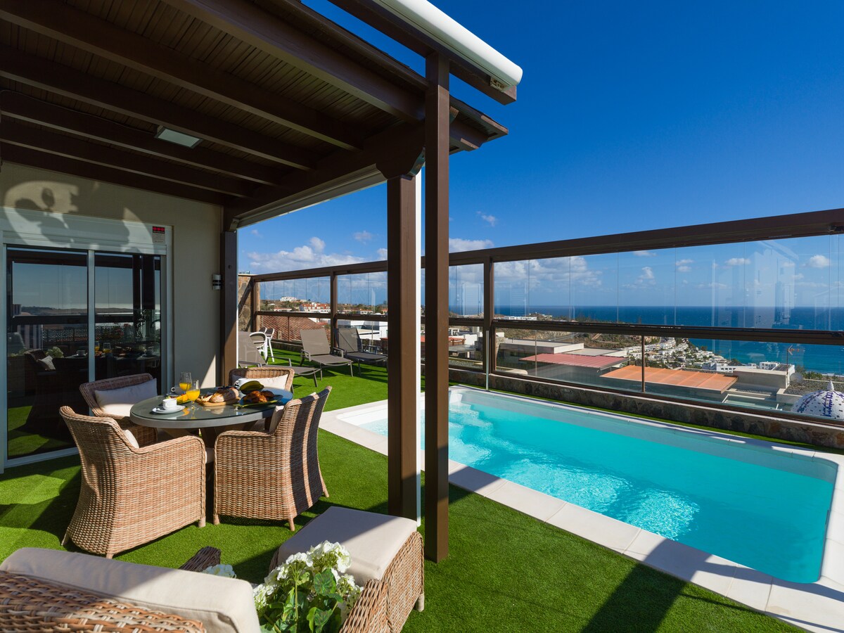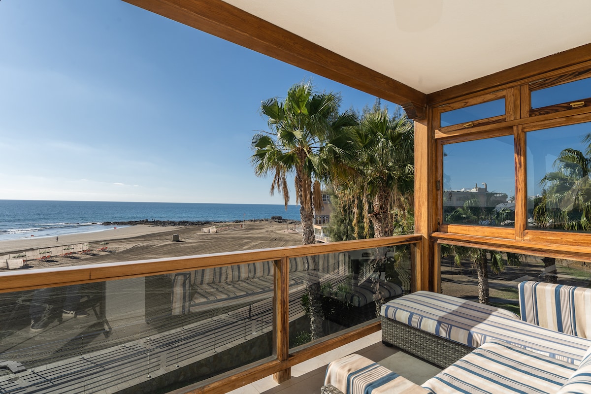 Apartment located in the south of Gran Canaria, just a few kilometers from tourist areas such as San Agustín, Playa del Ingles, and Maspalomas, on the seafront with direct access to the beach. The complex features carefully maintained gardens and spacious common areas, including a heated pool, a children's pool, and a sun terrace with direct sea views.