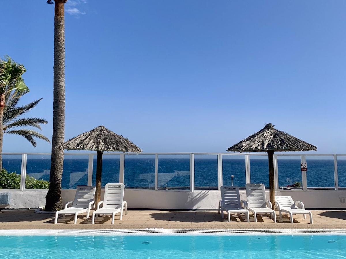 Superb apartment overlooking the beach of San Agustin. Consisting of a bedroom with double bed, sofa, bathroom, kitchen and balcony with breathtaking ocean views. It is inside a residence with an enchanting panoramic swimming pool and a lift for direct access to the beach. Bus stops, taxis, supermarkets, bars and restaurants are very close. Ideal for couples or solo travellers holidays. You will have everything you need for a comfortable stay.
