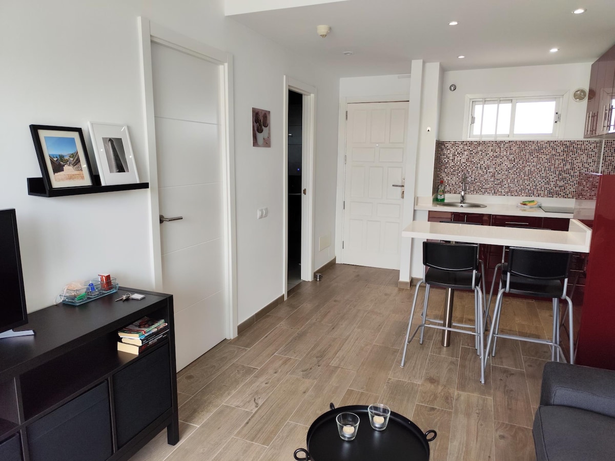 Stylish open-living apartment fully equipped with modern and high-standards furniture and lighting. Air Conditioning. Ideal location near the beach, bars and restaurants. Located in the very heart of Maspalomas nearby Yumbo Centre, packed with plenty of shops, restaurants, bars and clubs. Playa del Ingles beach and dunes are at just 5 mins walk-away. The perfect place to relax and have fun all year round!