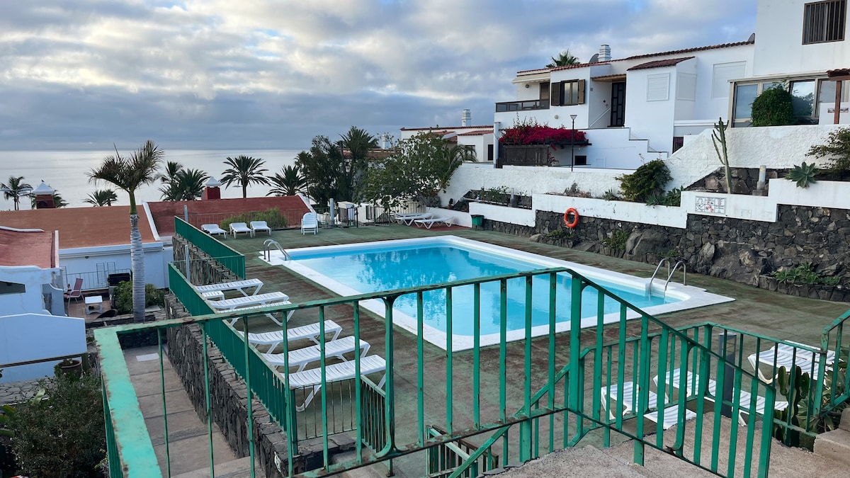Apartment located in the south of Gran Canaria, just a few kilometers from tourist areas such as San Agustín, Playa del Ingles, and Maspalomas, on the seafront with direct access to the beach. The complex features carefully maintained gardens and spacious common areas, including a heated pool, a children's pool, and a sun terrace with direct sea views.