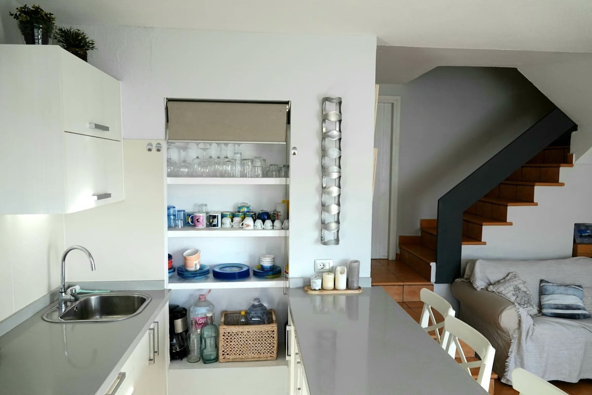 En este alojamiento se respira tranquilidad: ¡relájate con toda la familia, en pareja o en solitario! Es un precioso duplex con terraza en la parte inferior y otra en la planta superior. Dispone de una bonita piscina en un complejo de bungalows con pocos vecinos. 1 dormitorio con aire acondicionado y cama de matrimonio, 1 baño completo, 1 pequeña cocina, 1 sala de estar con sofá cama. Hay un amplio aparcamiento gratis anexo al complejo. Situación ideal en el corazon de Maspalomas y Meloneras.