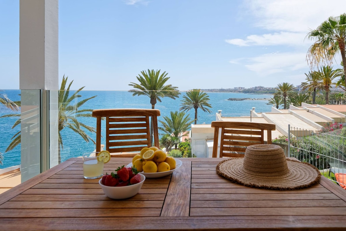 Apartment 100m2 with sea view and direct beach access in PLAYA DEL AGUILA. A corner of paradise with an exceptional climate all the year. Peaceful location that's ideal for families and romantic getaways. Come and recharge to the fullest! Large living room with full equipped kitchen and sofa bed for two people 1 bedroom suite with complete bathroom 1 double bedroom with 2 beds 1 bathroom with shower 2 terraces with ocean view All common areas as swimming pool and deck chairs have free access.
