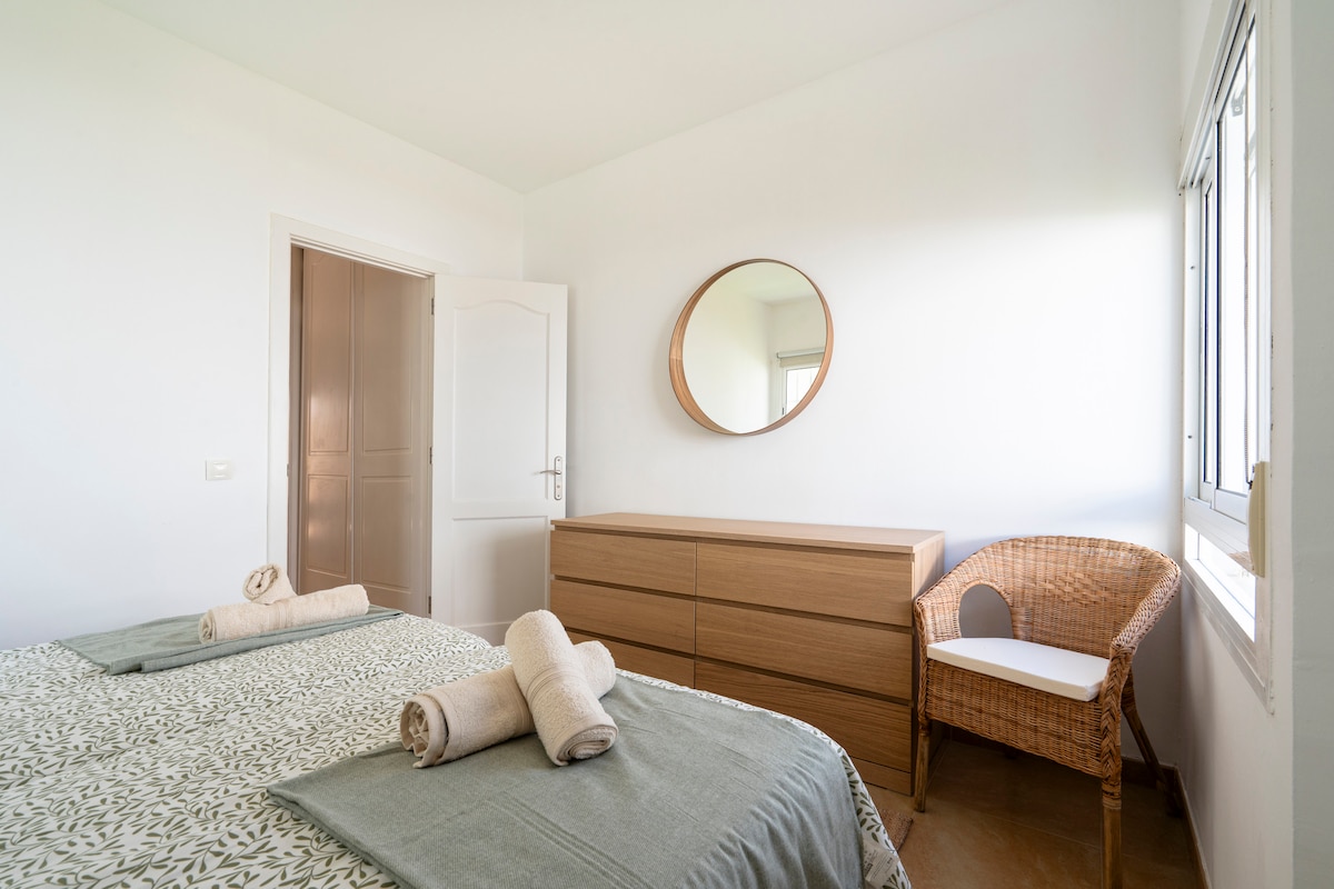 Apartamento para 5 personas a 50 metros de la playa de San Agustin. 2 dormitorios dobles, salón, baño, terraza y jardín. Piscina comunitaria. Parking gratuito cercano. Totalmente equipado, aire acondicionado, 2 televisores, wifi con fibra óptica a máxima velocidad e ilimitada, conexión a Netflix y antena parabólica. Zona con jardines muy tranquila y familiar.