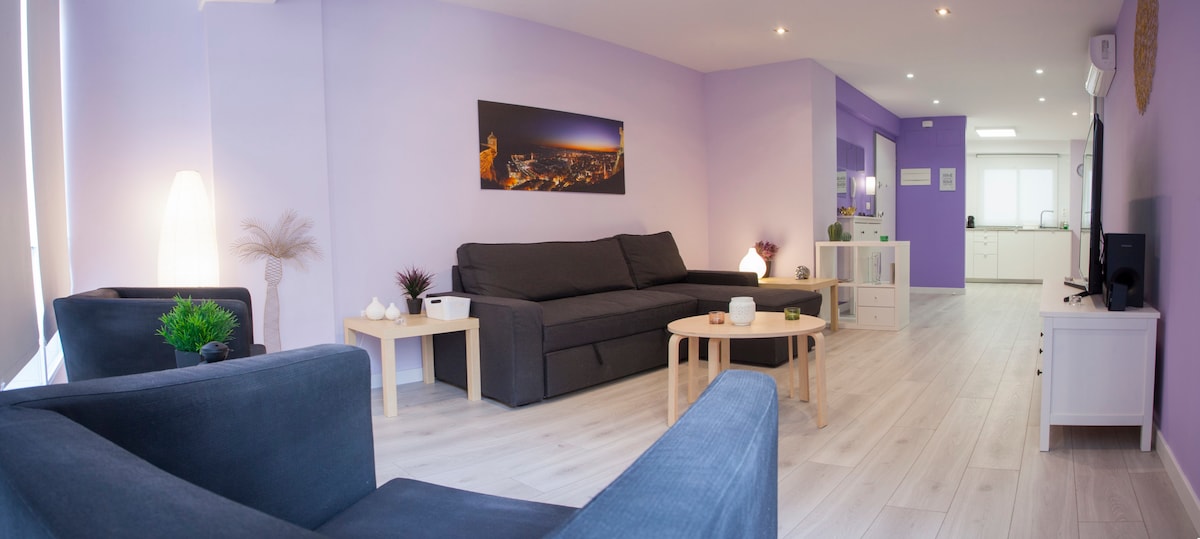 This cozy ground floor apartment is located just 5 mins from Renfe train station, 10 mins to City Center and 20 mins to the Postiguet beach (city beach). Completely renovated in 2017 with open kitchen, new appliances, 43 inch smart TV. Big salon area, private patio, kitchen equipped with stove, microwave and oven, AC in the bedroom (heating/cooling). A double bed in the bedroom, 2 single beds in the salon and possible to add an extra bed for the 5th guest.