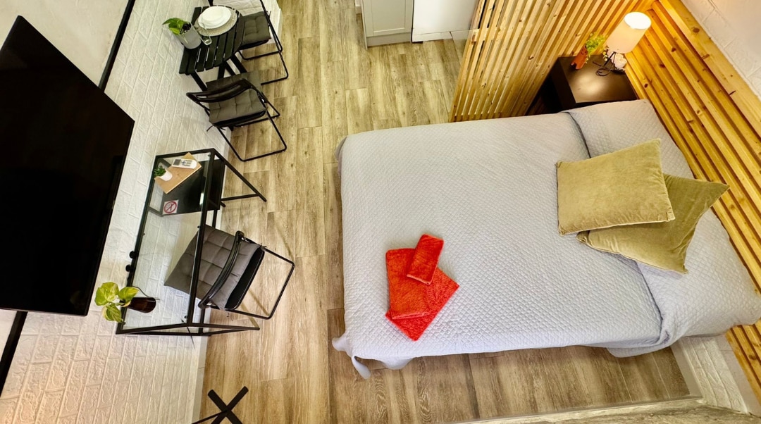 This beautiful, spacious and luminous 110 sqm loft is located in the heart of Alicante’s historic center with views over the old town. We renovated and designed this place respecting the traditional ways to build at the time, with limestone and wooden beams, while offering all the amenities of a modern apartment and a little bit of luxury. The beach is a 5 minutes (350m) walk away and the numerous nearby bars and restaurants invite you to enjoy the typical Mediterranean vibes of the old town.