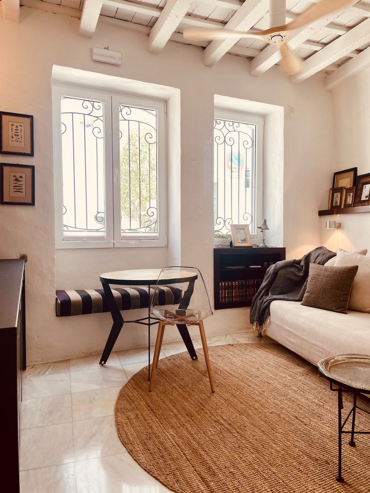 Apartamento en el corazón de Tarifa, ubicado en planta baja de un precioso patio andaluz. No necesitarás coche, ya que su ubicación es excelente, y podrás llegar a todos los lugares de interés andando (se encuentra a 1 minuto de la entrada del puerto, a 2 minutos de la plaza de abastos, y en 5 min andando estarás en la playa). Rodeado de zonas de Restaurantes y ambiente, sus muros antiguos de gran grosor hacen efecto cueva, aislando del ruido exterior para ofrecer una estancia relajada.