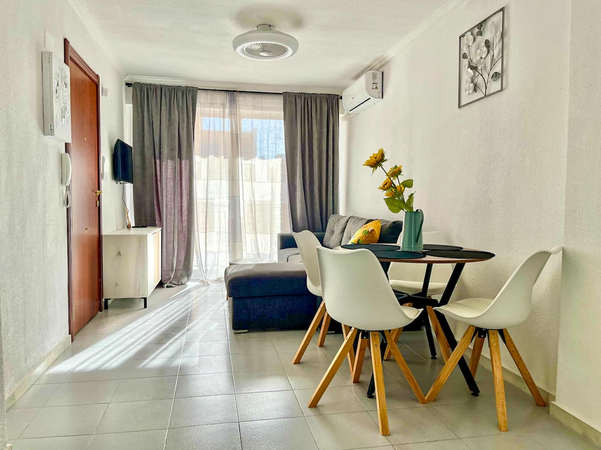 Bright and renovated apartment located just by the Acequin Beach. Three bedrooms, 2 bathrooms and kitchen/living room in a social open floor plan. The kitchen is fully equipped and also has a laundry machine, the living room has a smart -TV and there is a total of 6 comfortable beds. Two balconies, both with sea views. Just a few steps to Acequin Beach, 100 meters to Naufrago beach and just outside the apartment you will find a grocery store, shops, pharmacy and a busstop. Free parking.