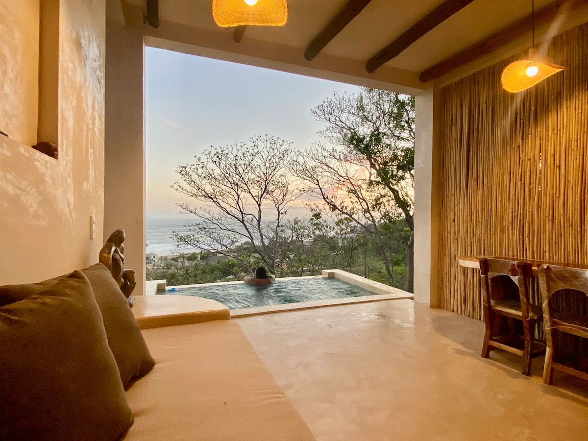 Stunning ocean view suite, affordable luxury, bathtube on the terrace, total privacy, ..right in the middle of town, steps away from the beach, ...restaurants and shops all there within a few steps. STARLINK wifi, air conditioning, mini fridge, tv. Soundproof, king size bed, lounge area on your private terrace overlooking the pacific...simpĺy the best place in town you will ever find!!!