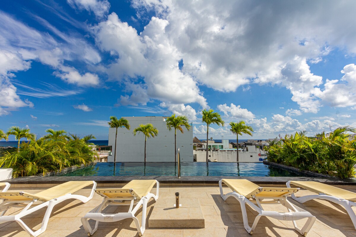 Luxury condo in prime Playa del Carmen, just steps from Mamitas Beach and a short walk to Quinta Avenida. Designed for comfort and refined coastal living, the residence features bright interiors, high-end finishes, a spa-style rain shower, private balcony with tranquil mangrove views, and fast fiber Wi-Fi. Guests enjoy an ocean-view rooftop with pool, hot tubs, and gym, plus 24/7 security and self check-in—an elegant retreat near top dining, shopping, culture, and nightlife.