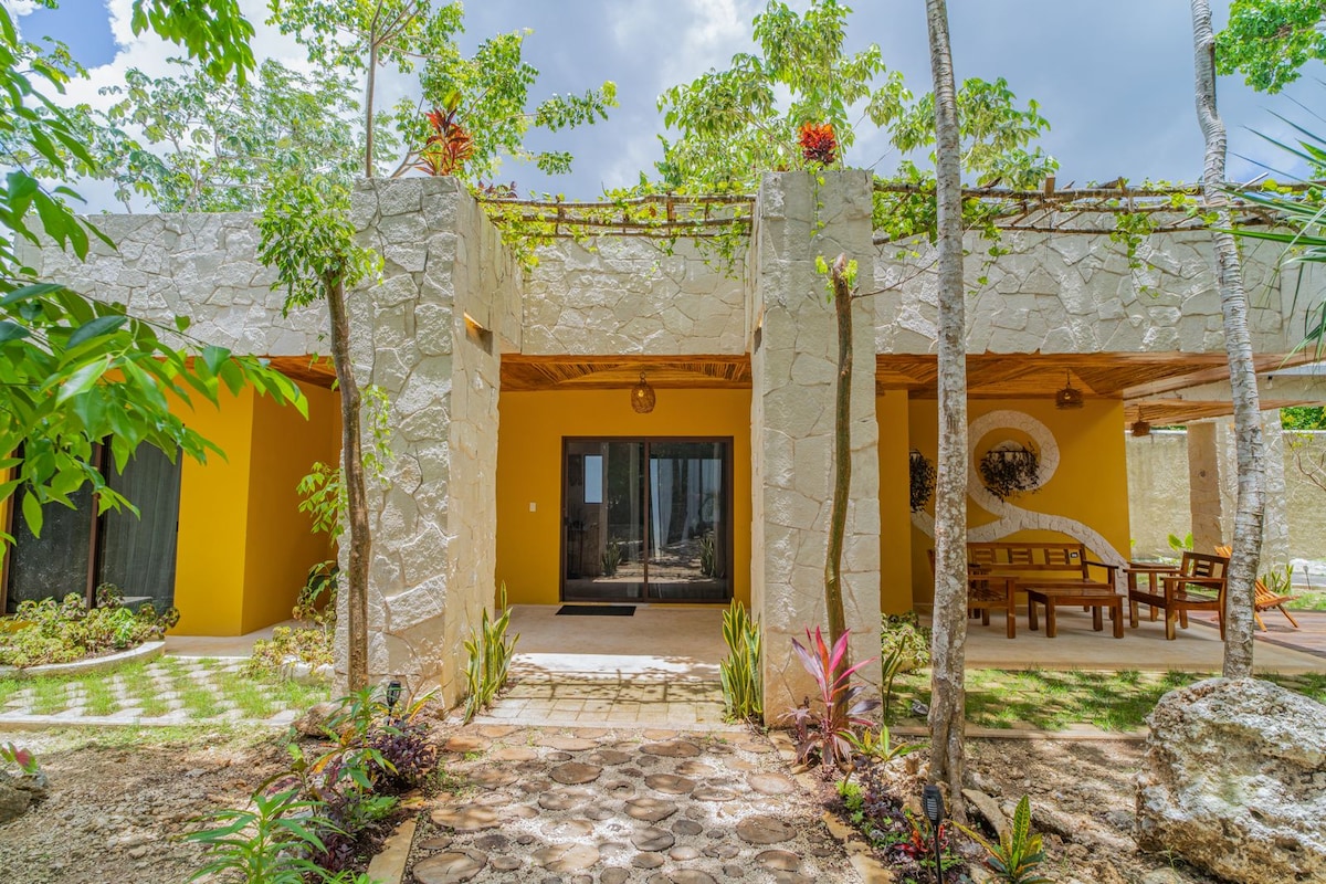 Welcome to our unique, family-friendly palapa home tucked away in the jungle of the Riviera Maya. This off-grid, eco-friendly home is found in the tranquil community of Pueblo Sacbe where you will find 3 private cenotes that offer a refreshing and peaceful escape from the tropical climate and stresses of everyday life. Our two-story home is 100% solar powered and gives you a sense of glamping while maintaining all the essential modern amenities and furniture of a traditional home.