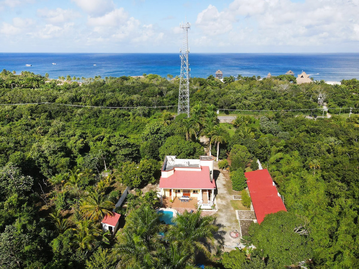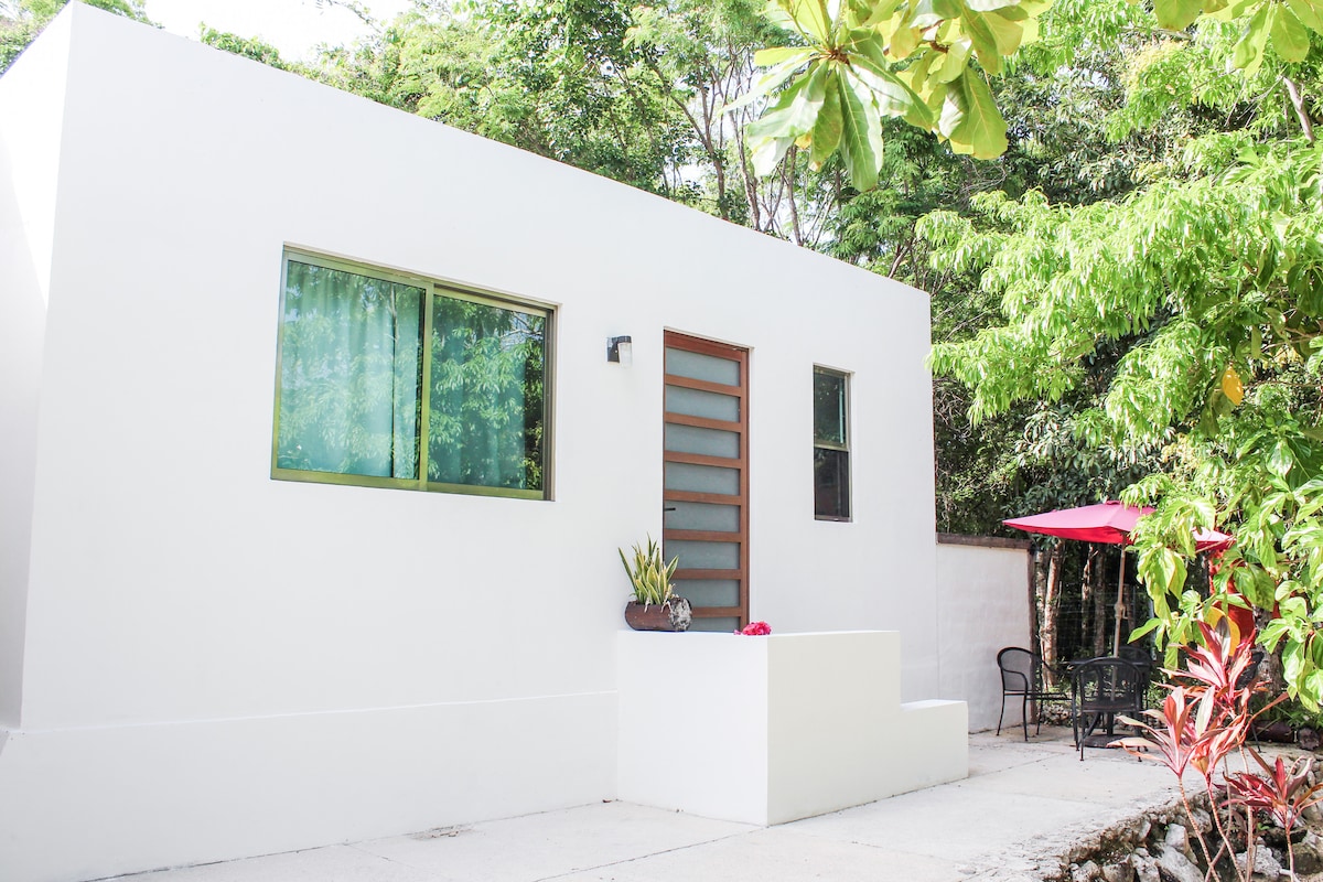 COME SHOWER NUDE IN THE RAIN at breathtaking Casita Brisa. Modern Luxury combined with the beauty of the jungle. 770 sq. ft. guest apartment 1 bdrm/1 bath located on 1.5 acres in the jungle. I have a huge, private pool incorporating a double 25 meter swim lane & Fiber Optic WiFi . Completely private from the main villa, it's your home away from home. Xpuha Beach, Akumal, Playa & Tulum are close, accessible by mini bus or car. Birds & iguanas is right outside your window, a sight be behold!
