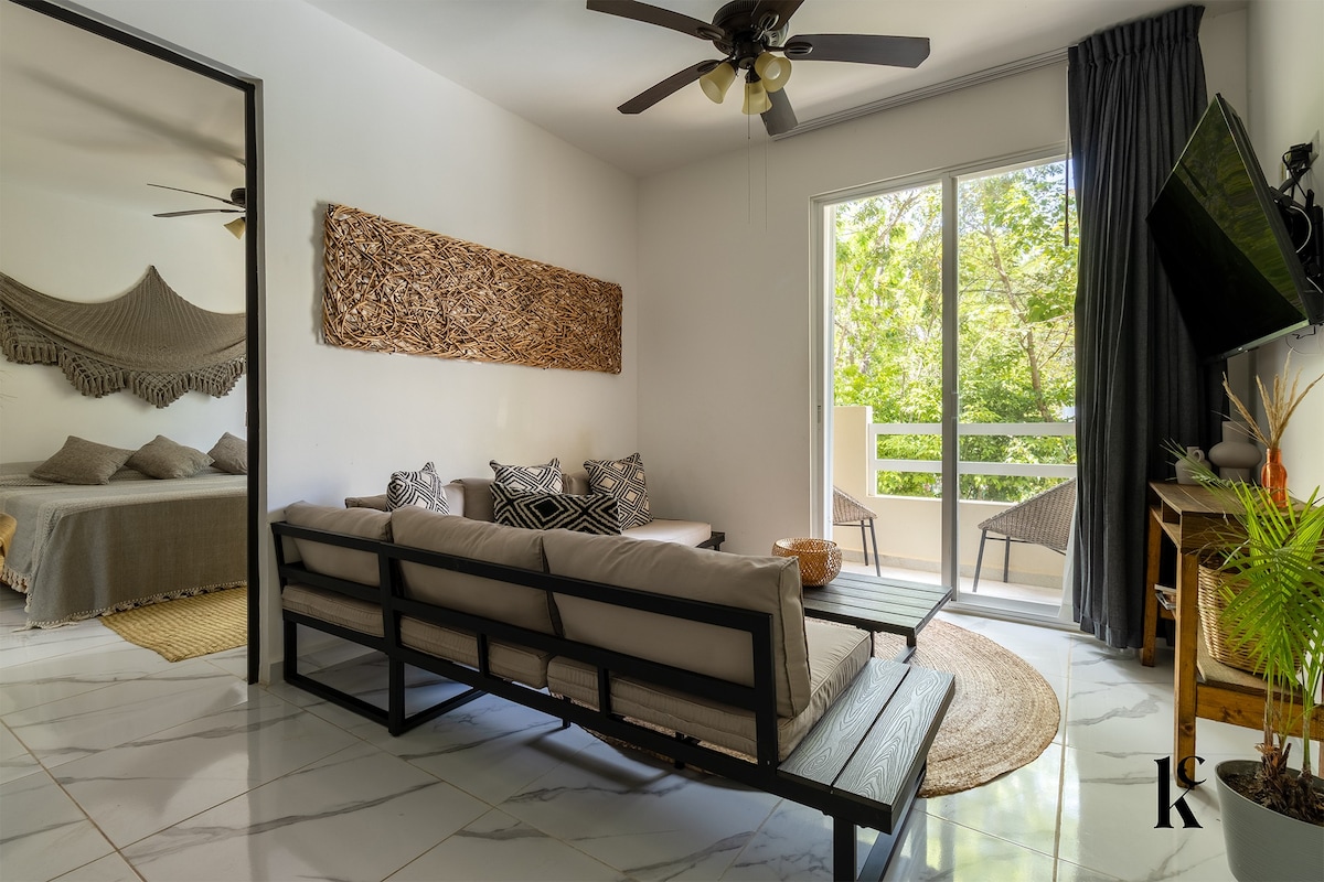 Siéntete como en casa y disfruta un hermoso alojamiento amplio completo con habitación.Nuestro rincón de serenidad es un refugio con estilo,donde la simplicidad y la belleza imperfecta se unen para crear una experiencia única.Este alojamiento se sumerge en la esencia del entorno natural y cultural de la zona. Te sentirás en sintonía con la tranquilidad que ofrece este paraíso dentro de un condominio con seguridad 24 hrs. con amenidades tipo resort tan solo 5albercas,gym,canchas en áreas comunes.