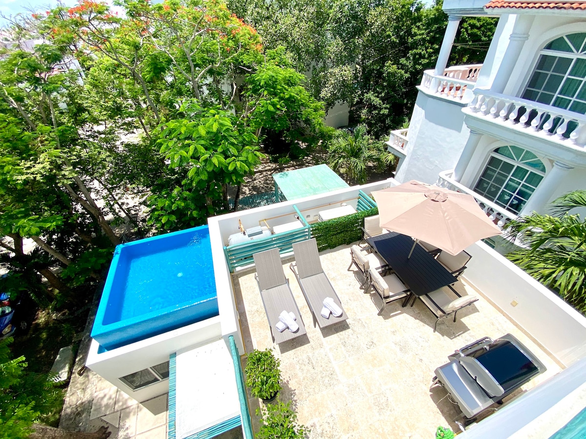 One Private jacuzzi jungle view, - 2 private Jacuzzi with Caribbean sea view and Cozumel Island. - Fully equipped kitchen - Large private swimming pool - BBQ grill and BBQ area with outdoor accommodations - Access to 10 bottles of wine included in the price of rent - Rooftop terrace with large jacuzzi - high-speed internet in every room - 3 TV sets Other things to note with additional cost: - Transportation to the airport. - Tours - Chef services - Personal fitness training