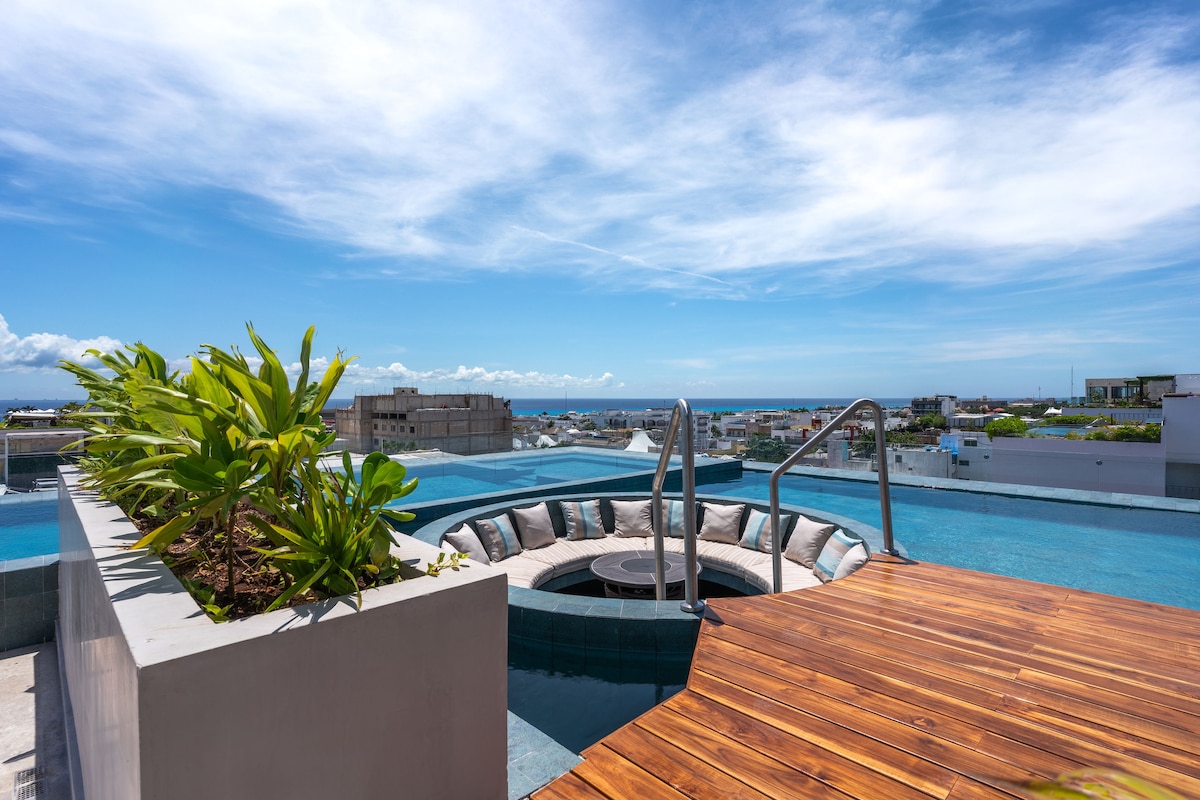 Cielito Lindo is a PH Studio just in the heart of Playa Del Carmen. With an oceanside view and just less than 450 meters away from the beach. Cielito Lindo is fully equipped with all your needs. Enjoy a private balcony, a second floor in the same unit with a Private pool, an area to BBQ, and enjoy a great evening. With also access to common areas such as a GYM, SAUNA, and INFINITY POOL. All within the walking distance of the majority of restaurants, supermarkets, branded stores, and nightclubs.