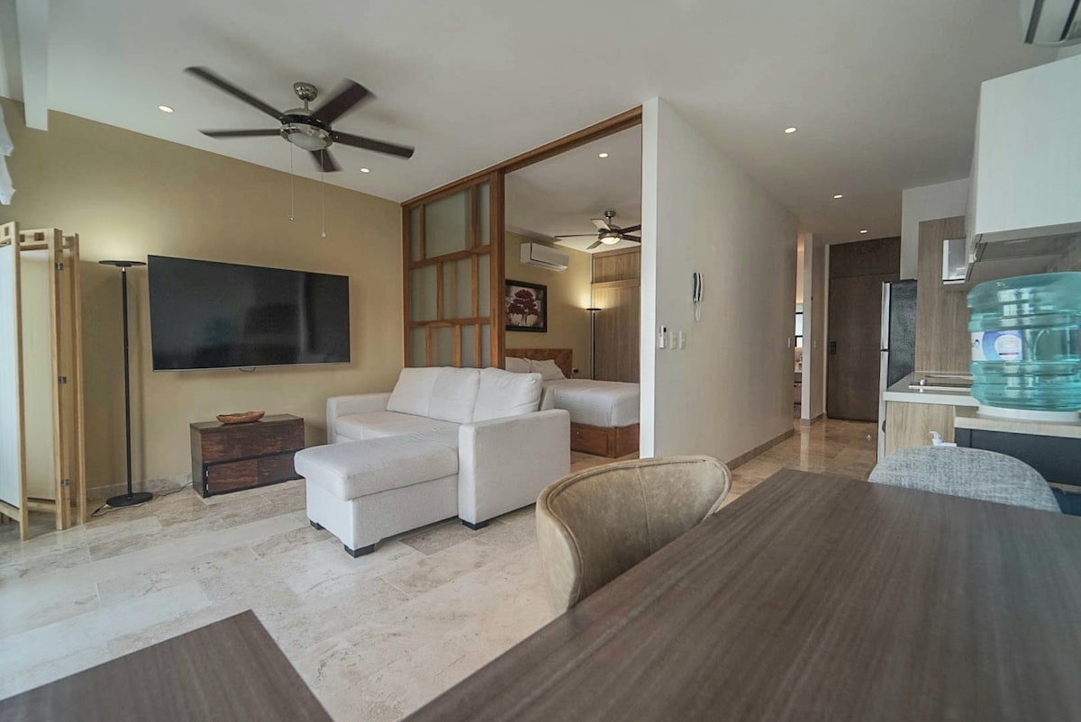 IPANA is a new and modern Condo located in the best area of Playa del Carmen, on Calle 38 and Avenida 10. Close to the best entertainment venues and a 4-minute walk from the beach. With the best amenities in the area, 4 swimming pools, Bar, Gym, a massage, Coworking, a children's area, billiards, and a TV area. The apartment has one bedroom, fully equipped with WiFi, SmartTV, full kitchen with the best amenities, that your stay lacks for absolutely nothing.