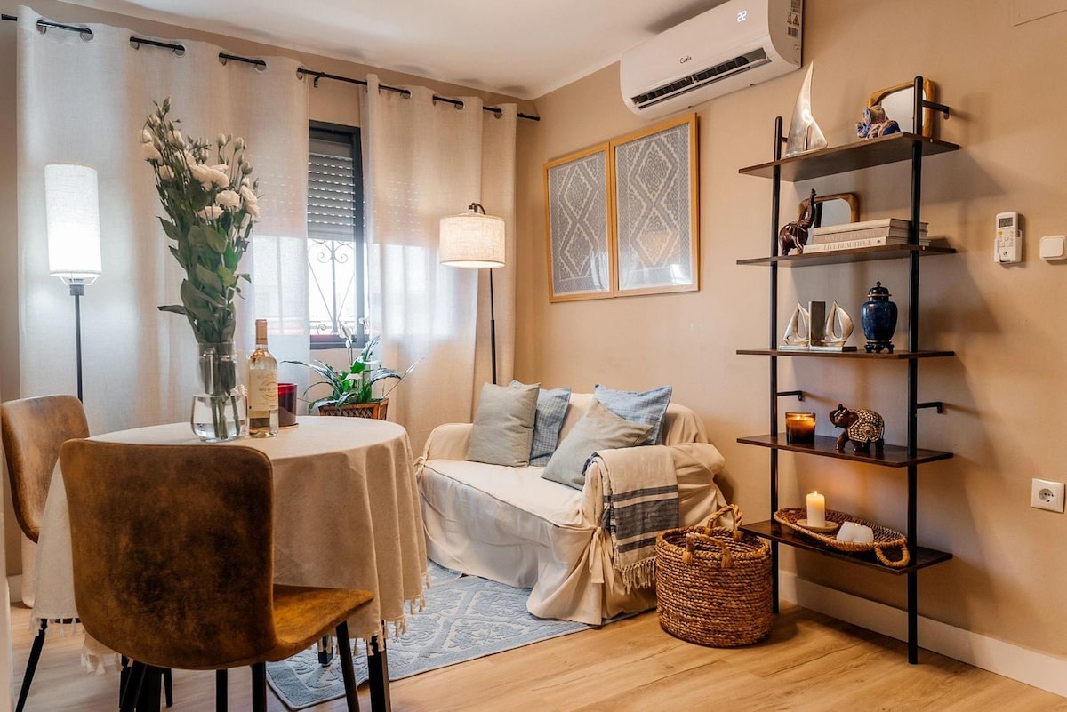 Modern & bright 2-bedroom ground floor apartment in Estepona Port, just a 3-minute walk to the beach. Recently renovated, it features a cozy living room with A/C, fully equipped kitchen, stylish bathroom, and workspace with high-speed WiFi — perfect for remote work. Guests can enjoy a shared patio, laundry room, and plenty of free parking nearby. Ideal for families, couples, or professionals looking for comfort and a central location close to restaurants, shops, and the marina.