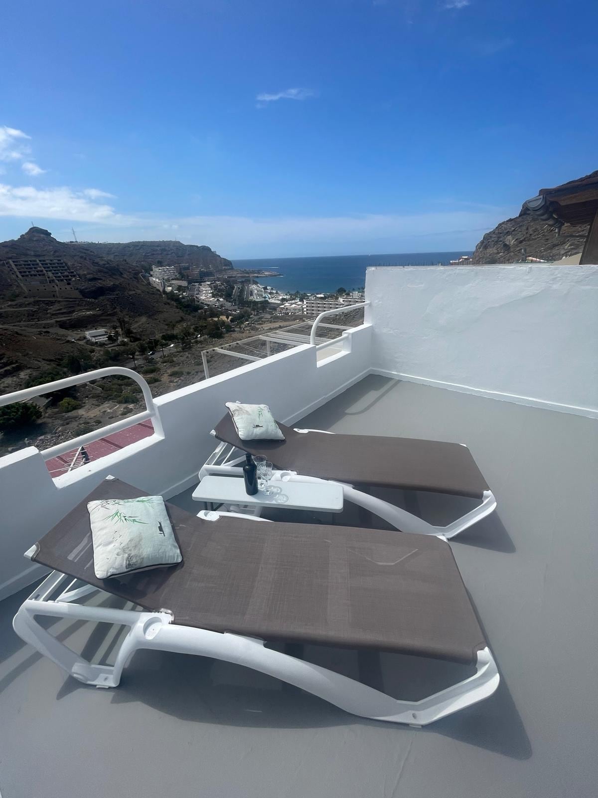 Te va a encantar mi apartamento con magnificas vistas al Océano Atlántico, ubicados en Playa del Cura, a 10km del Puerto de Mogán. Pisicna CLIMATIZADA todo el año. 1 Dormitorio. Salón, cocina y espléndida terraza privada de 18 m2 con toldo abatible.. Salón con sofá chaise longue. ENTRADA --> 15:00 a 20:00. SALIDA --> 11:00. 2 Colchones nuevos individuales, vestidos juntos. Máx. ocupación: tres personas ( 3 )