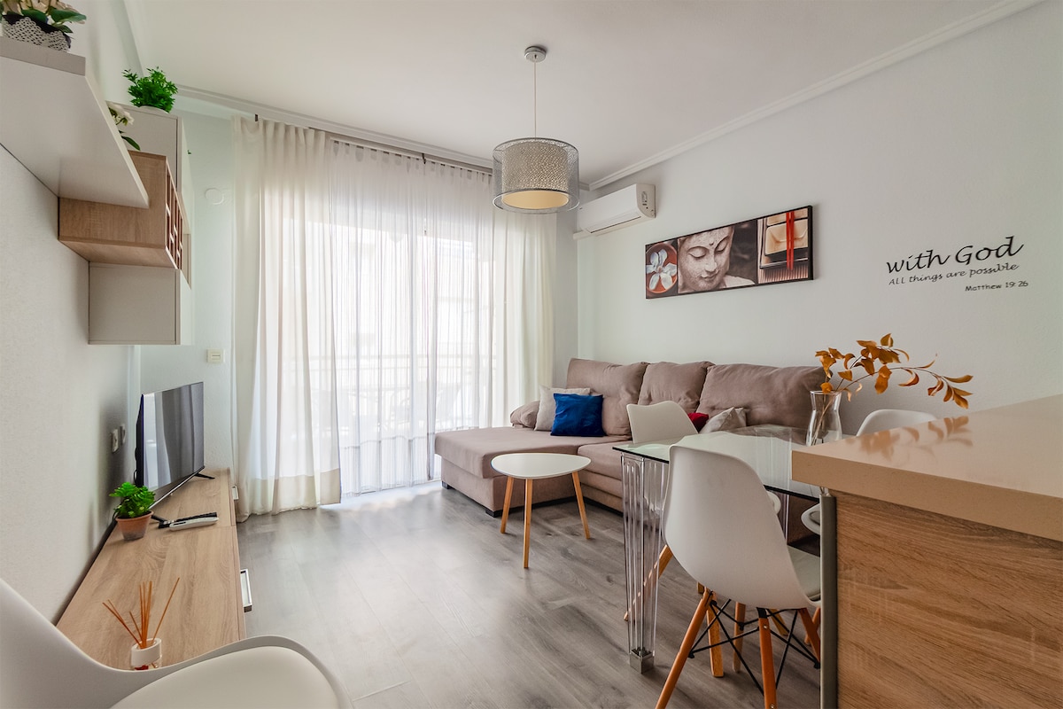 This cozy 1-bedroom apartment in Torrevieja’s city centre is perfectly located just steps from the beautiful Los Locos beach. With vibrant restaurants, bars, and shops right outside, you’ll have everything at your doorstep. Enjoy stunning ocean views from the balcony, perfect for an evening sunset. The beach promenade and two of Torrevieja's main city beaches are just a short stroll away, offering the ultimate beachside experience. Ideal for a relaxing coastal getaway!